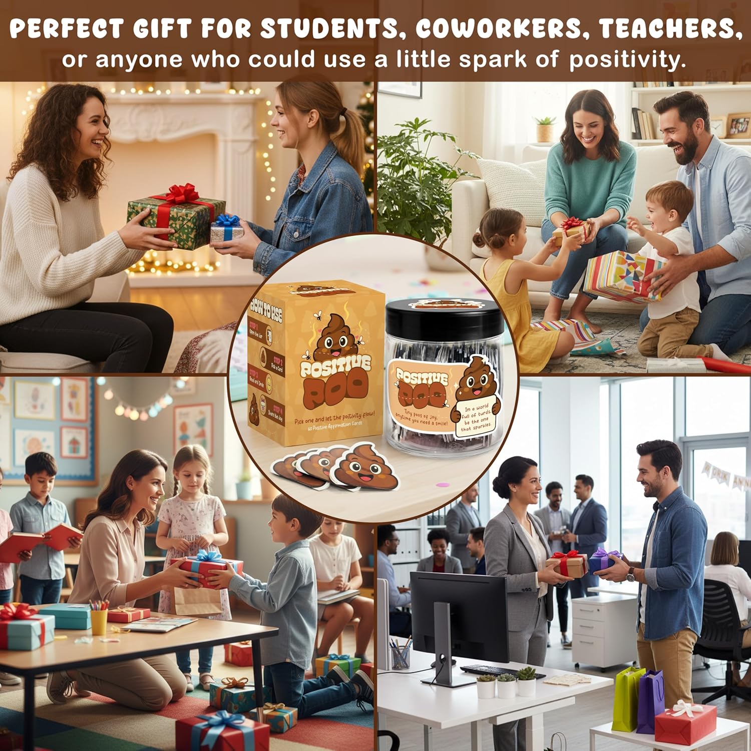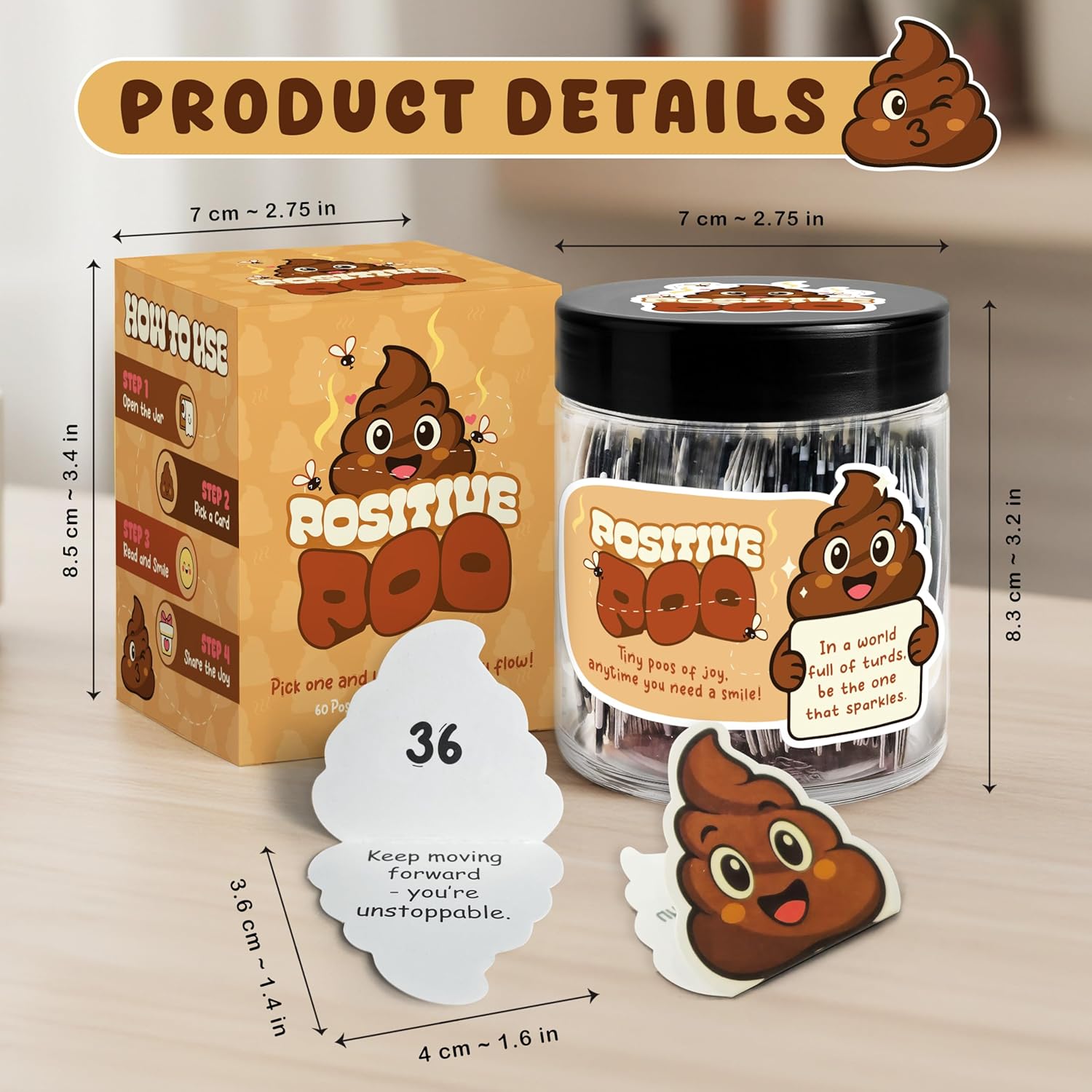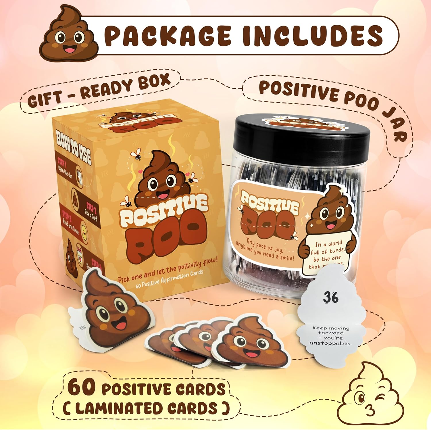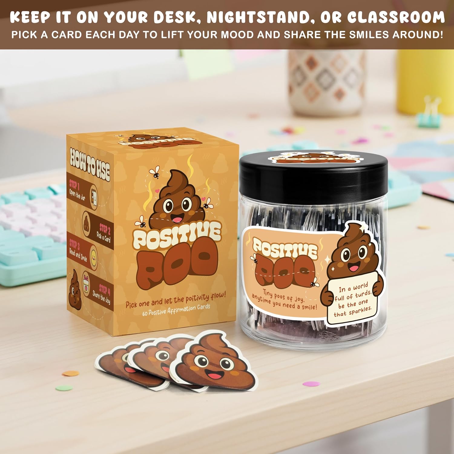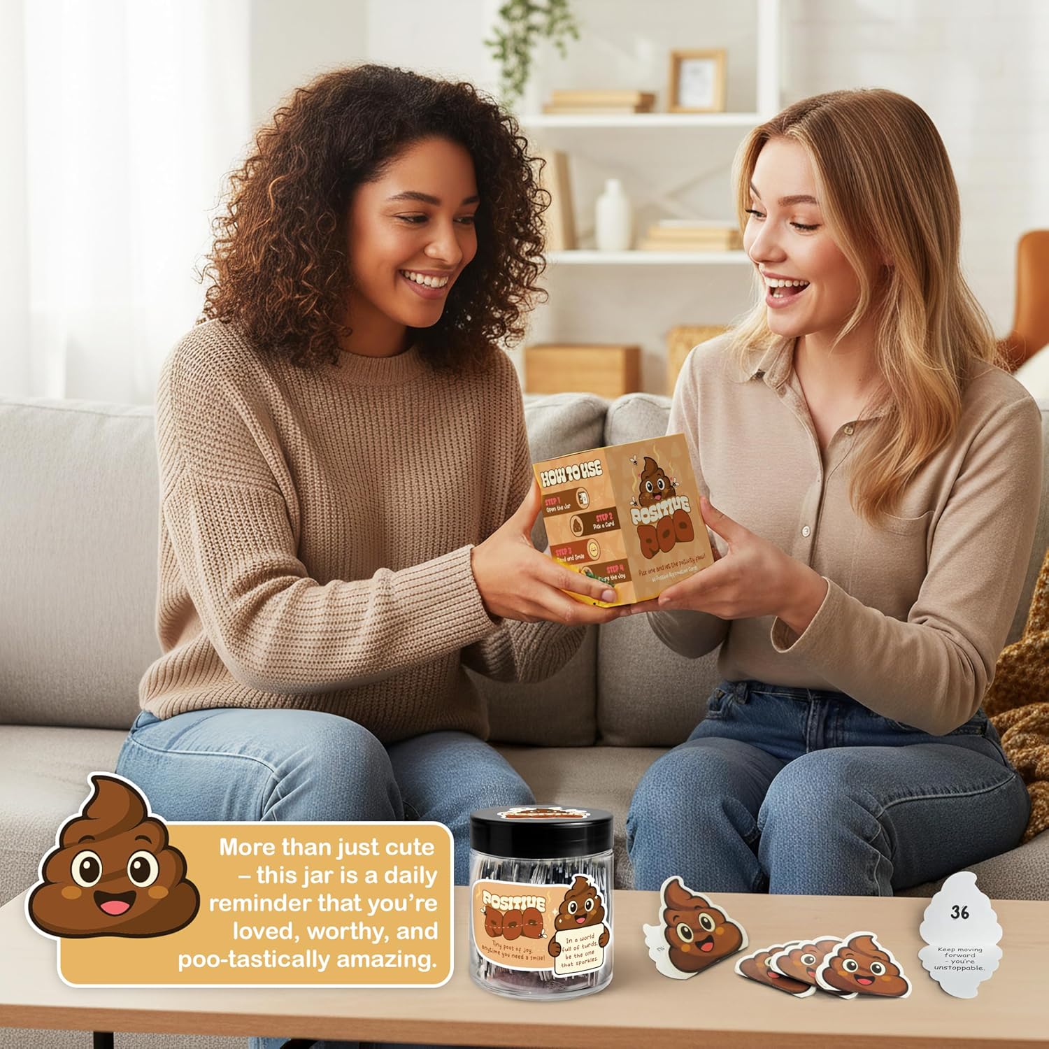 Hilarious Positive Affirmation Cards – Includes 60 positive poop affirmation cards with cute emoji designs and uplifting quotes. Great poop gifts for adults funny, funny affirmation card gifts, and poop emoji gifts for anyone who needs a laugh.