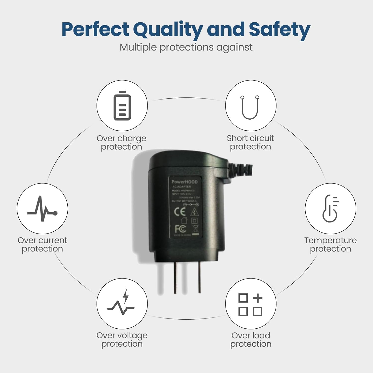 [Built-in Safety Features]: Your safety is our top priority. The Charger by PowerHOOD is equipped with multiple built-in safety features, including overvoltage protection, short circuit protection, and overcurrent protection. These features ensure a stable and secure charging experience, giving you peace of mind while your devices power up.