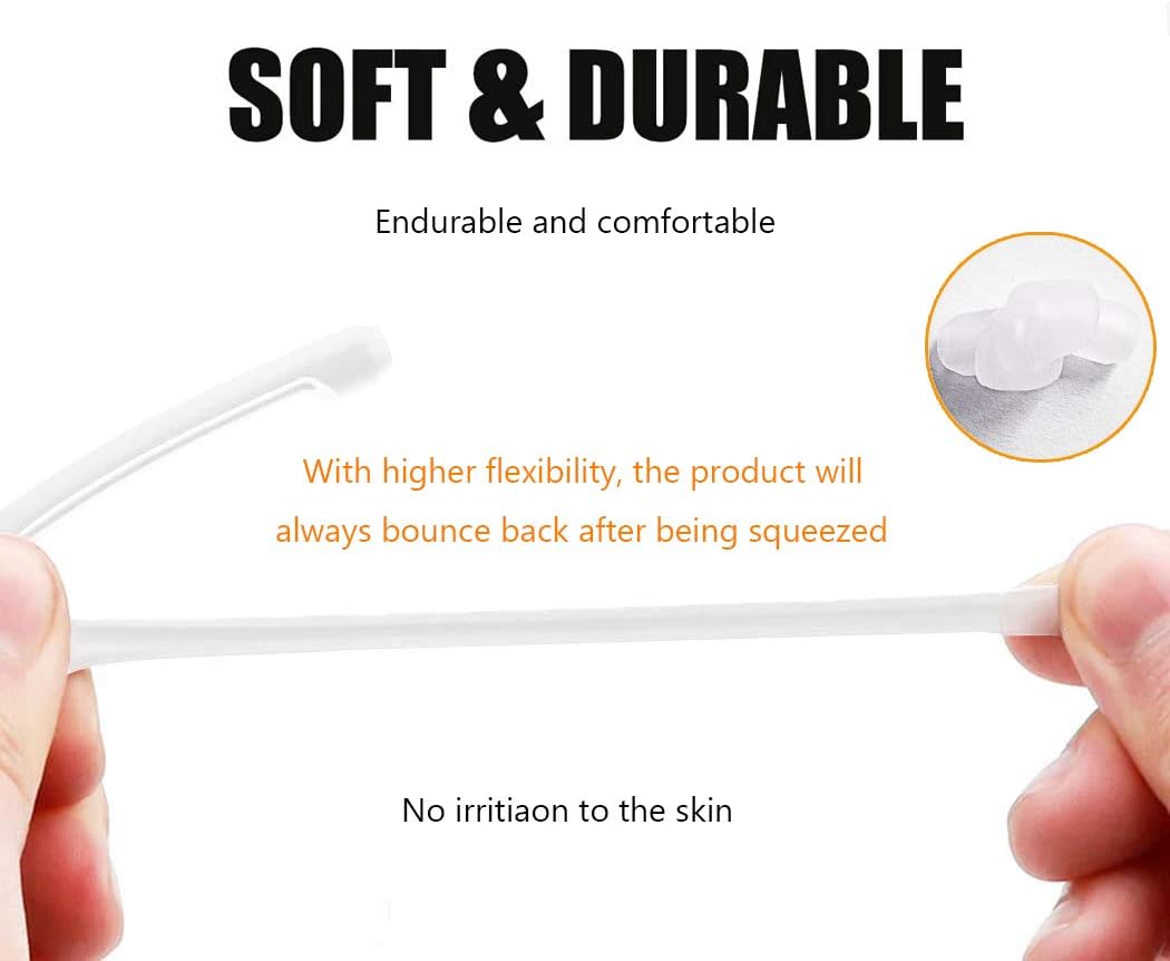 The soft silicone material is gentle against your skin.Help your glasses stay in place and prevent them from slipping;Relieve the pain in your ears caused by the temple arms;Effectively relieve discomfort when wearing glasses due to oily sweat on the head.