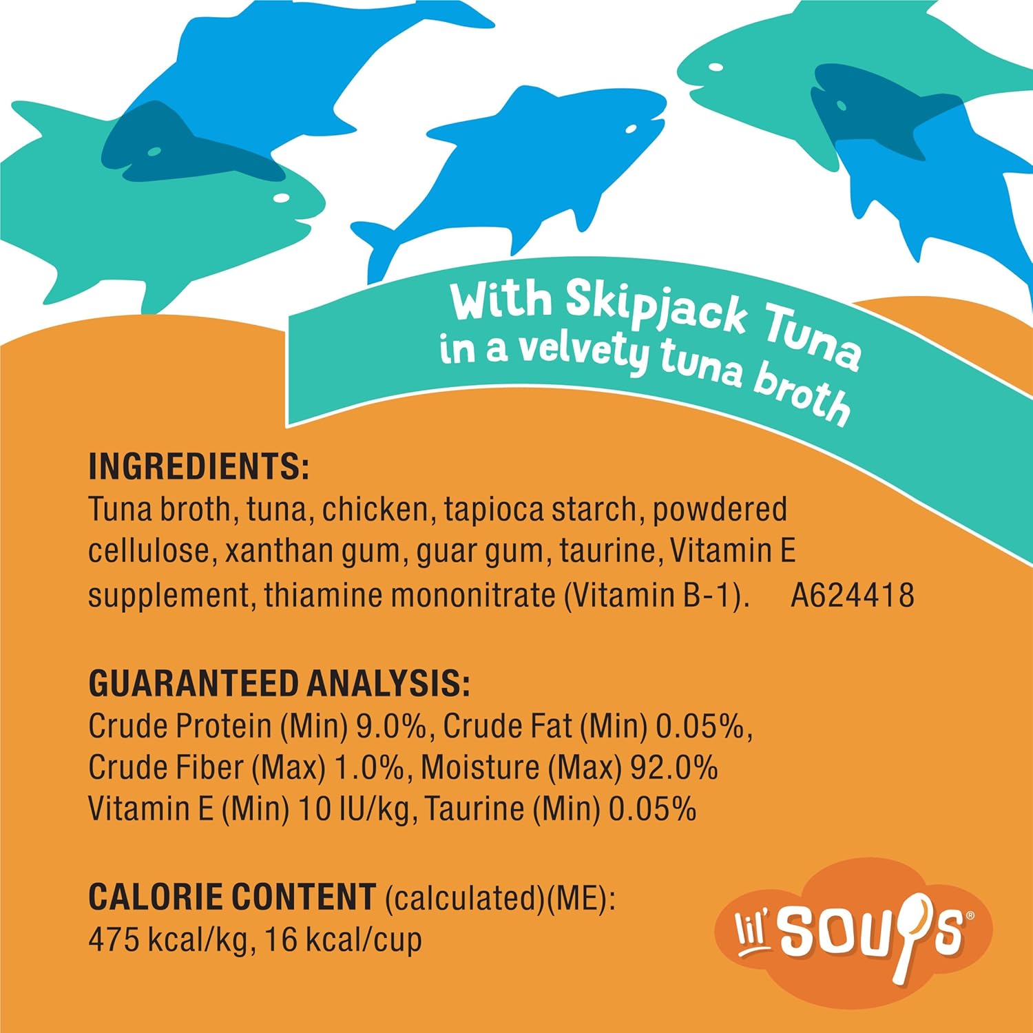 Make every day special for your cat when you serve Purina Friskies Lil’ Soups With Skipjack Tuna in a Velvety Tuna Broth adult wet cat food complement. Made with real skipjack tuna, this delicious complement for senior cats features a smooth, velvety broth that adds mouthwatering flavor to every bite. Serve it as a scrumptious afternoon or mid-morning snack, and watch her lap up every last drop of whisker-licking goodness. This grain-free formula with added vitamins includes vitamin E and taurine to help support your senior cat’s health. The tender tuna morsels are easy for your cat’s mouth to manage. Intended as a complement to your adult cat’s complete and balanced diet, Purina Friskies Lil’ Soups adult wet cat food complements are the perfect way to cater to her cravings for a between-meal nibble. She gets the taste and texture she adores, and you get the satisfaction that comes from feeding your beloved feline a snack that comes from a trusted name in pet nutrition.