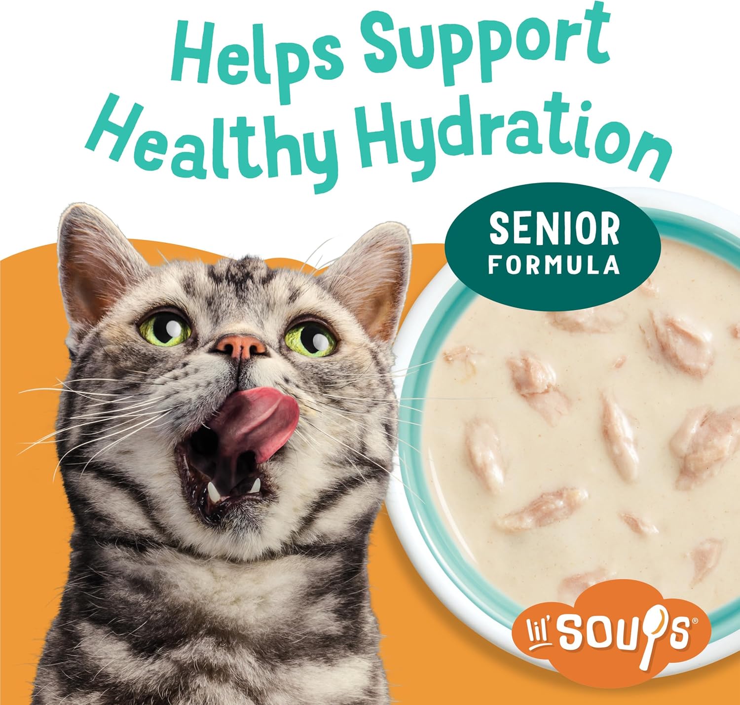 Lickable grain free cat treats made with real tuna and intended as a complement to your senior cat’s complete and balanced diet