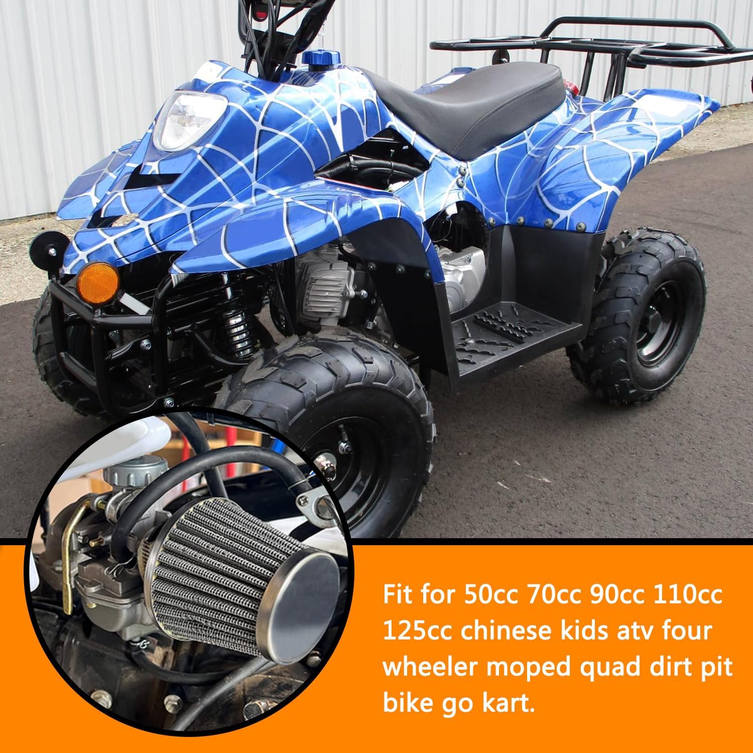 Fitment —PZ20 Carburetor Carb Air filter Gas fuel line hose with shut off valve petcock Kit for 50cc 70cc 90cc 110cc 125cc chinese kids atv four wheeler moped quad dirt pit bike go kart,such As: Roketa Sunl Taotao Coolster Apollo lifan Baja X-Pro Icebear Kazuma Vitacci Venom Buyang Coolsport Redcat.