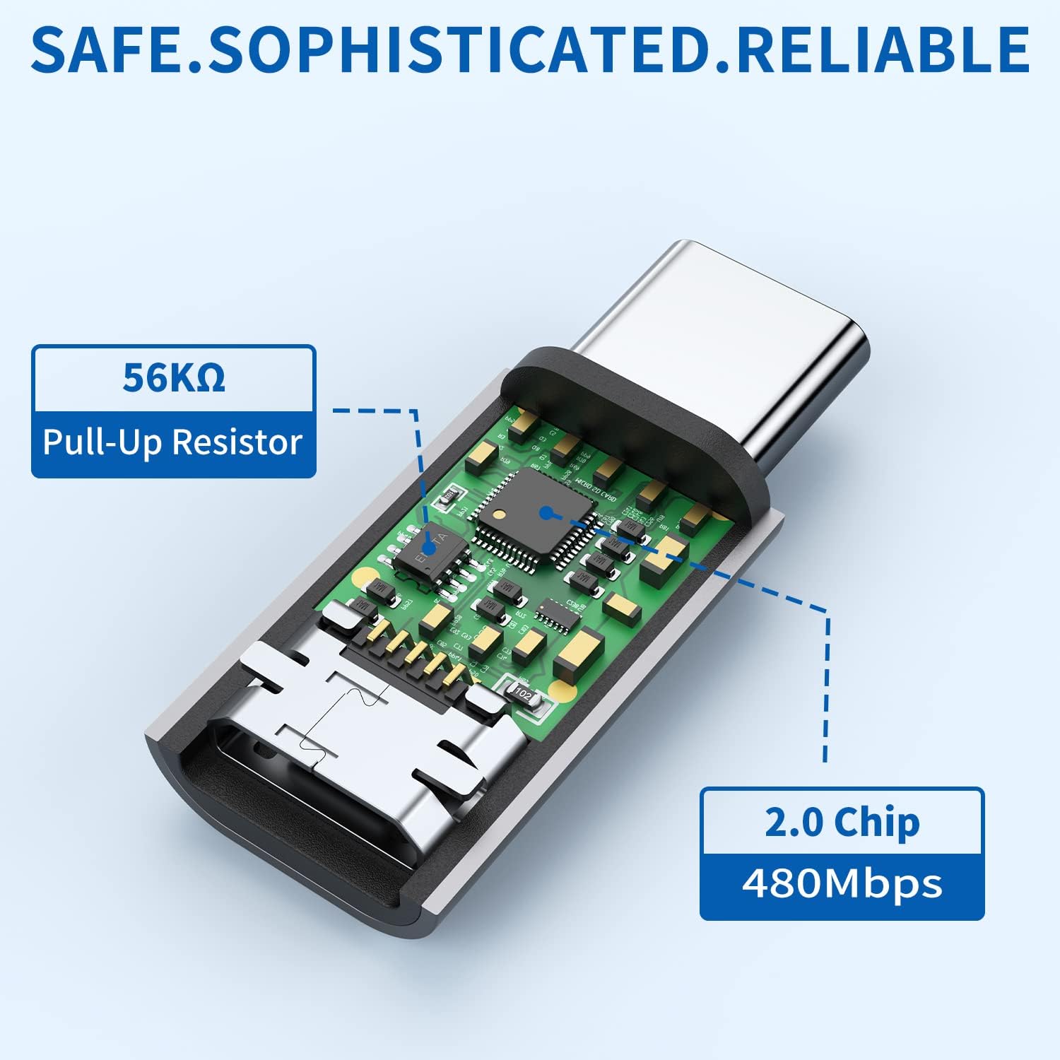 ⍟Safety and Stable⍟C-to-micro Chargers 56k ohm power pull-up resistor can Improves the current stability and protect your device away from high levels of current.