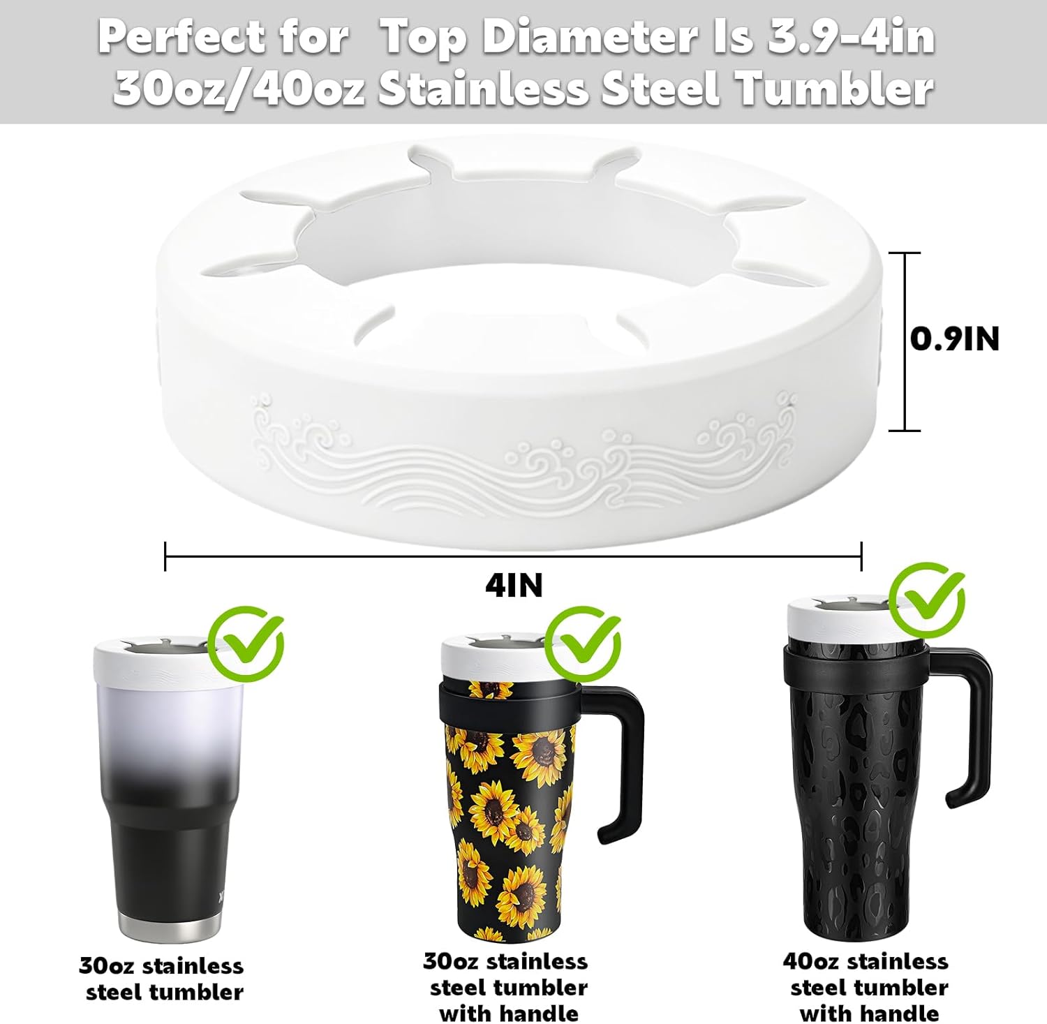 Perfect Fit for 30oz Tumblers – Ideal 30oz tumbler accessory, precisely fits 3.9-4 inch cup mouths. Compatible with 30oz stainless steel tumblers from YETI, RTIC, BJPKPK, MEWAY, and also matches Starbucks/Dunkin Donuts cups. One-click installation, ideal for home, office and on-the-go use.