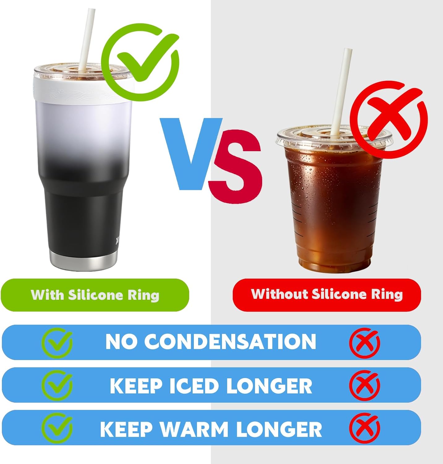 Low-Cost Tumbler Functional Upgrade – Turn your 30oz stainless steel tumbler into a professional Iced Coffee Sleeve with just one ring. No need to spend extra on special cold drink sleeves, far higher cost-performance than disposables, save money and practical for daily use.