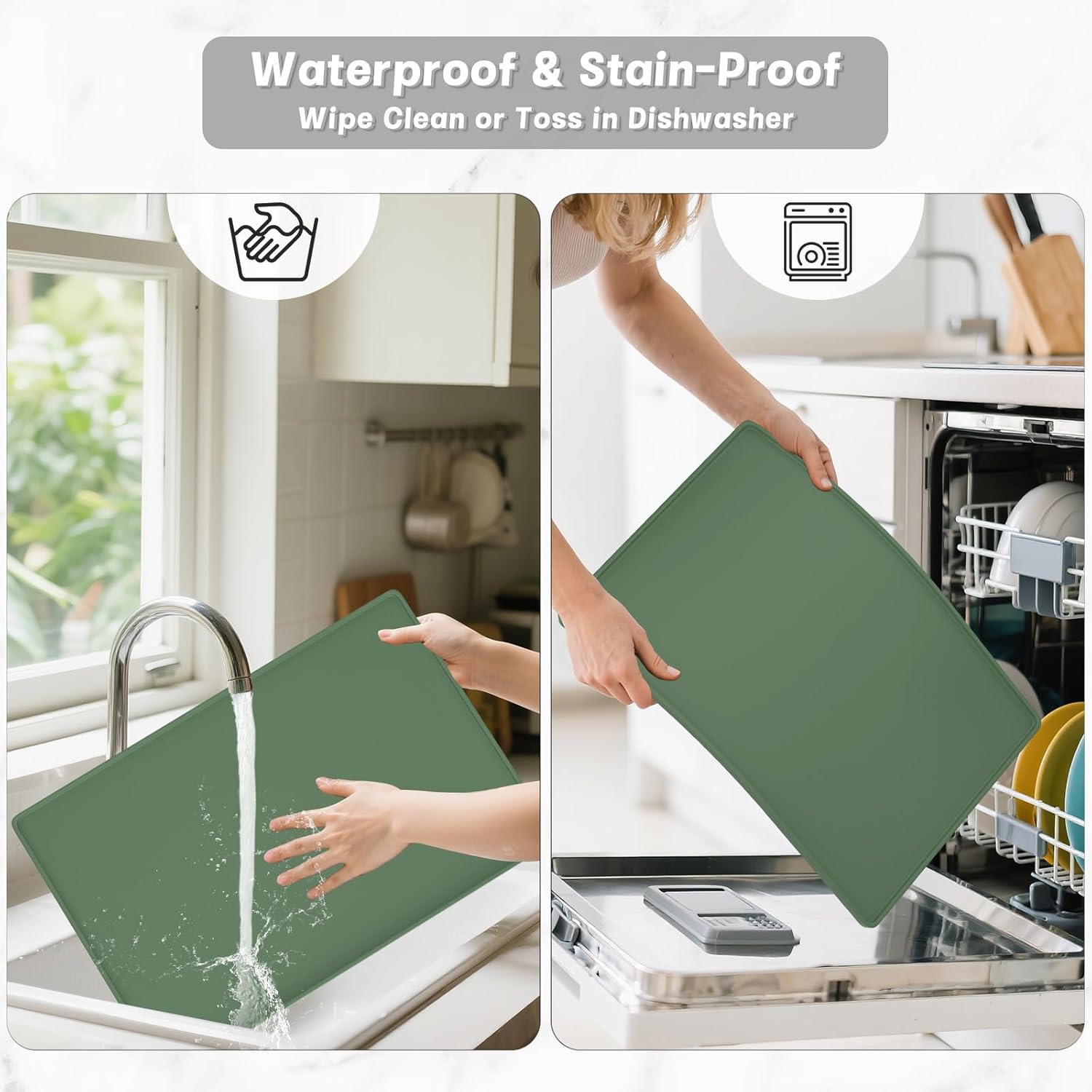 Waterproof Coffee Bar Mat: Thickened waterproof silicone repels coffee, oils, and milk. Clean in seconds: wipe, rinse, or dishwasher-safe (top rack). Ideal for messy coffee routines – dries odor-free, no stains left behind