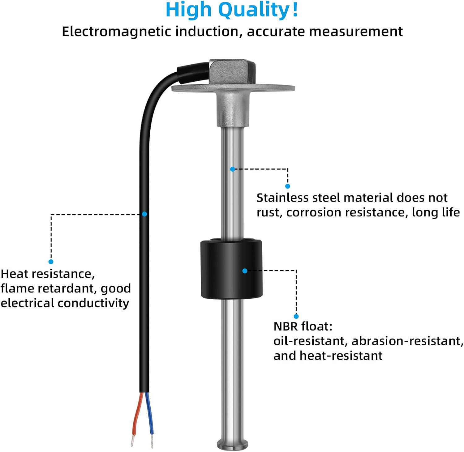 [High Precision and Long Life]: The exterior is made of stainless steel, and the interior is controlled by high-quality reed switches. The sensor is corrosion-resistant, does not rust, has a long life, stable output signal, and accurate measurement. Suitable for gasoline, diesel, water, methanol, etc.