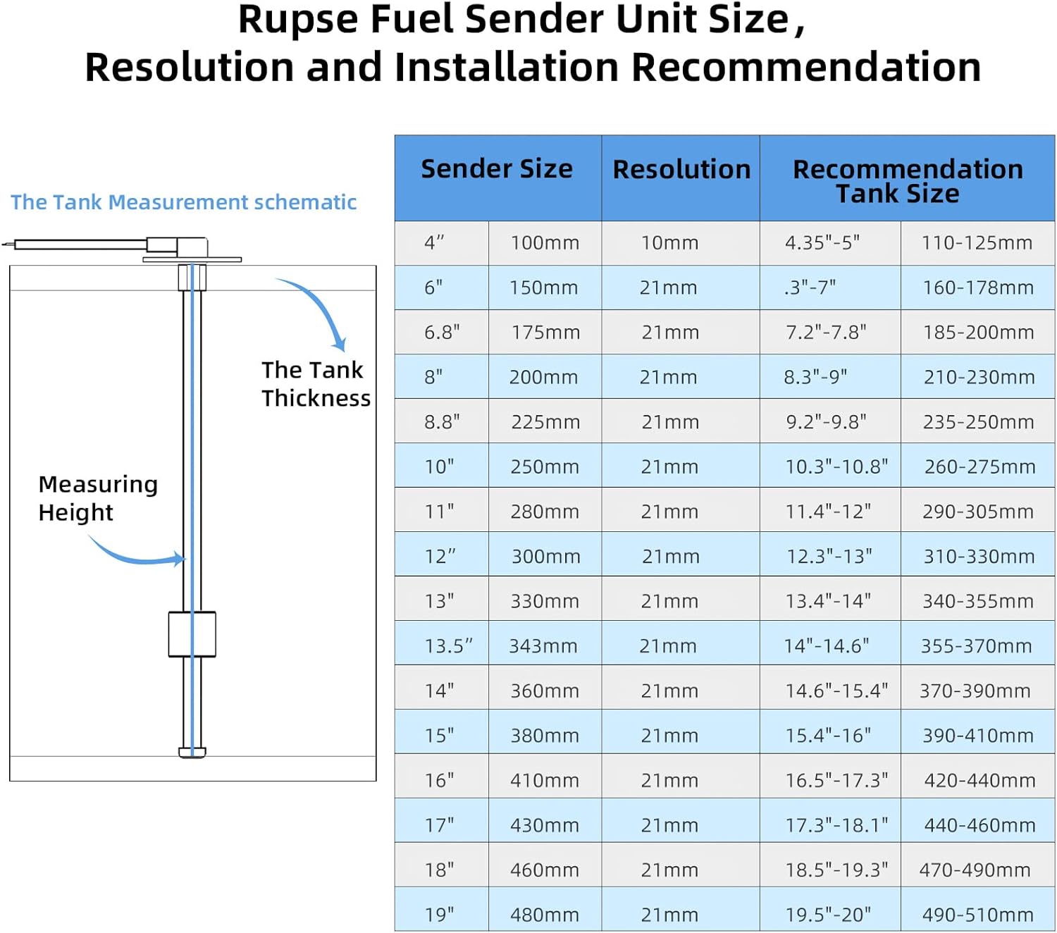 [Multi-Size]: Various sizes can be selected to meet different sizes of fuel tanks for Automobiles, Ships, Yachts, RV, Agricultural vehicles and Industrial equipment.