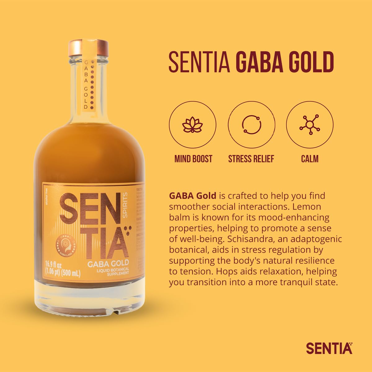 Sentia Spirits Gaba Gold, Botanical Alcohol Free, Drink , Award Winning, Vegan, Gluten Free and GM Free, Zero Proof, Citrus Ginger Taste Up to 20 Drinks, 16.9 fl oz (500ml), Mix with Lemonade or your favourite mixer