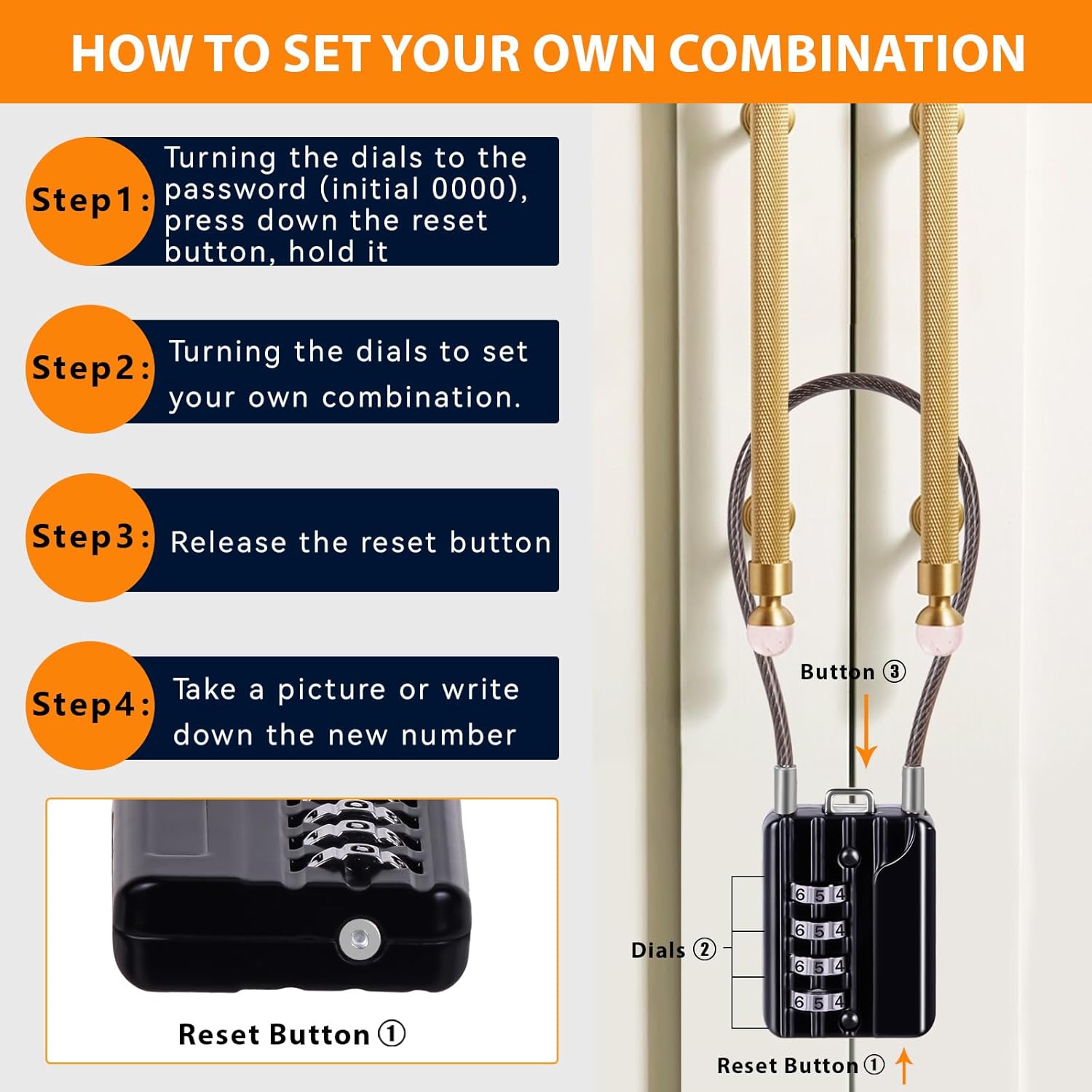 🛡️ Customizable Security – Explore 10,000 combination possibilities with our 4-digit personalized combination lock. Ideal for securing your suitcase, backpack, gym locker, or toolbox. A simple, yet reliable alternative to TSA locks.