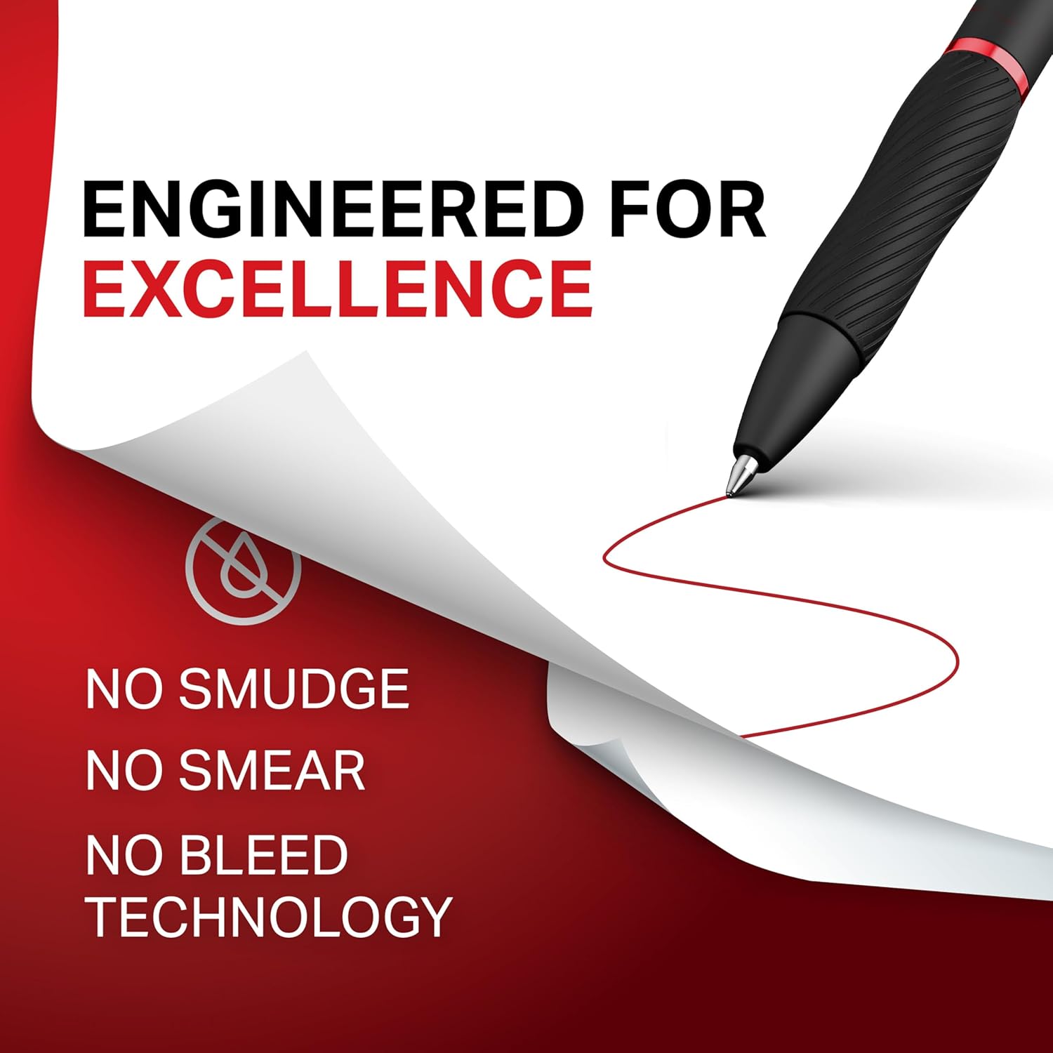 Smoother, bolder, cleaner, and quicker drying than the leading competitor (Compared to the leading competitor; across black, blue, and red ink based on 95% reliability)