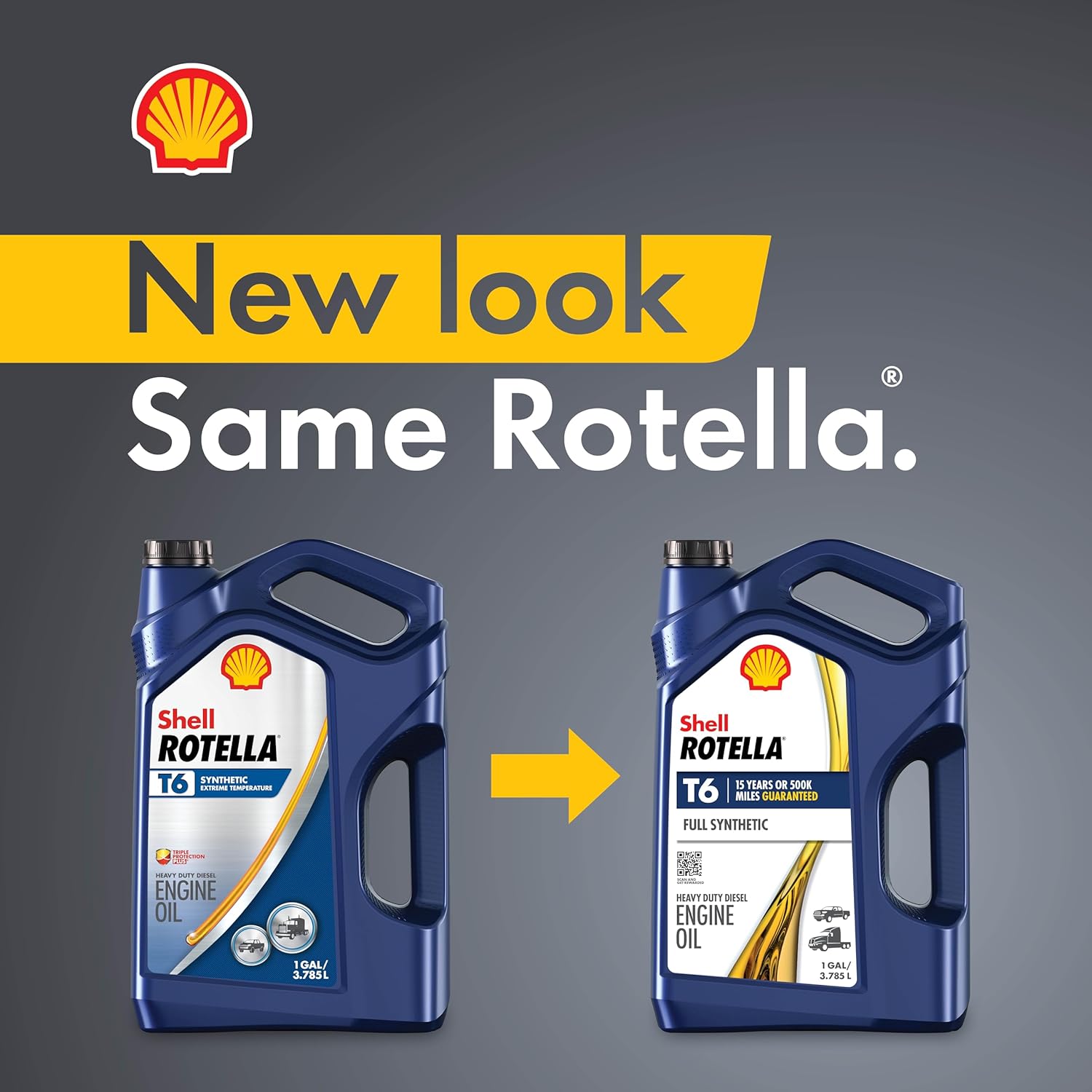 Shell Rotella T6 5W-40 diesel engine oil is a full synthetic motor oil that features exclusive Triple Protection Plus technology. It’s formulated with fully synthetic base oils plus advanced additives to protect against wear, deposits, and oil breakdown. It also provides better low-temperature flow and enhanced fuel economy performance of 1.5% (compared to 15W-40 oils). Shell Rotella T6 5W-40 is suitable for new and older diesel-powered vehicles from Class 8 tractor/trailers to heavy-duty diesel pickups, delivery, utility, school bus fleets, and motorcycles. It provides a significantly increased level of protection against harmful engine wear (compared to previous generation API CJ-4 engine oils), and the advanced multi-functional dispersant additives offer an enhanced level of protection against the effects of soot, dirt, and other contaminants. (*Shell Rotella Limited Warranty: Up to 15 years or 500,000 miles, whichever comes first, guaranteed, if you exclusively use Shell Rotella T6 Full Synthetic heavy-duty engine oil and meet enrollment mileage and vehicle manufacture date requirements. Enrollment required. Keep your receipts. Other conditions apply. See Rotella.com/warranty to enroll and for full details and terms.)