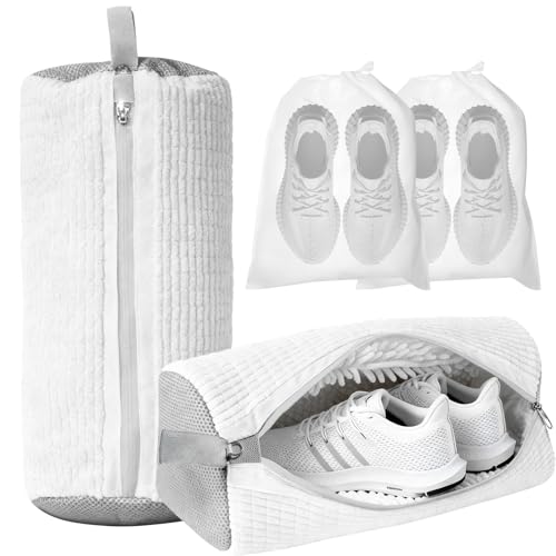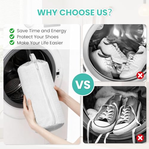 Shoe Washing Machine Bag, 2-Pack Reusable Shoe Bag for Washing Machine, 360° Deep Clean for Sneaker, Running Shoes,Bras, Delicates and Toys, Includes 2 Shoe Storage Dust Bags(White)