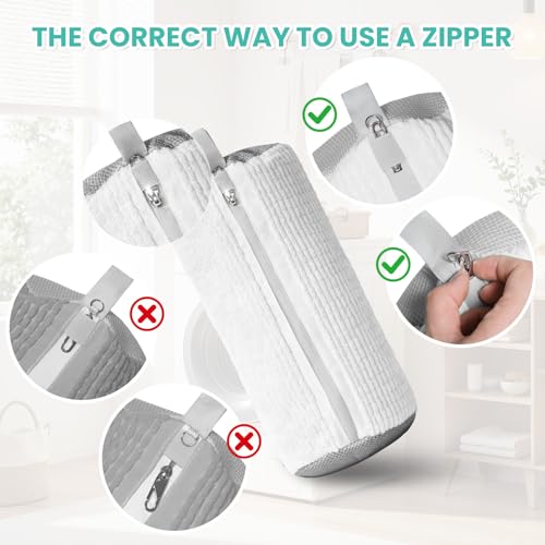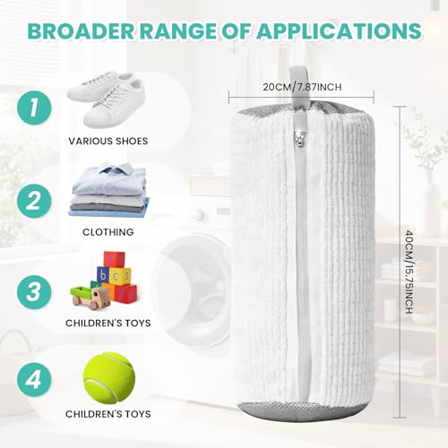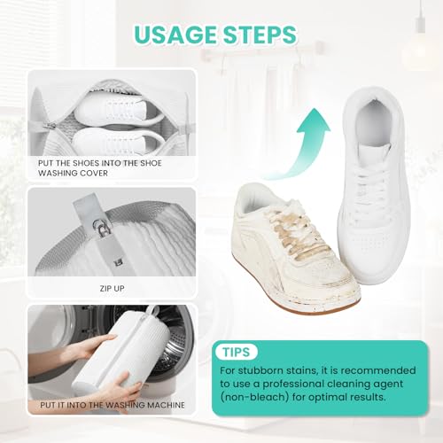 【Secure Metal Lock System】The shoe washing bags features a heavy-duty metal zipper with an S-shaped pull lock to prevent accidental opening during spin cycles. The zipper cover protects your washing machine from scratches. Your shoes stay in, safe and sound.