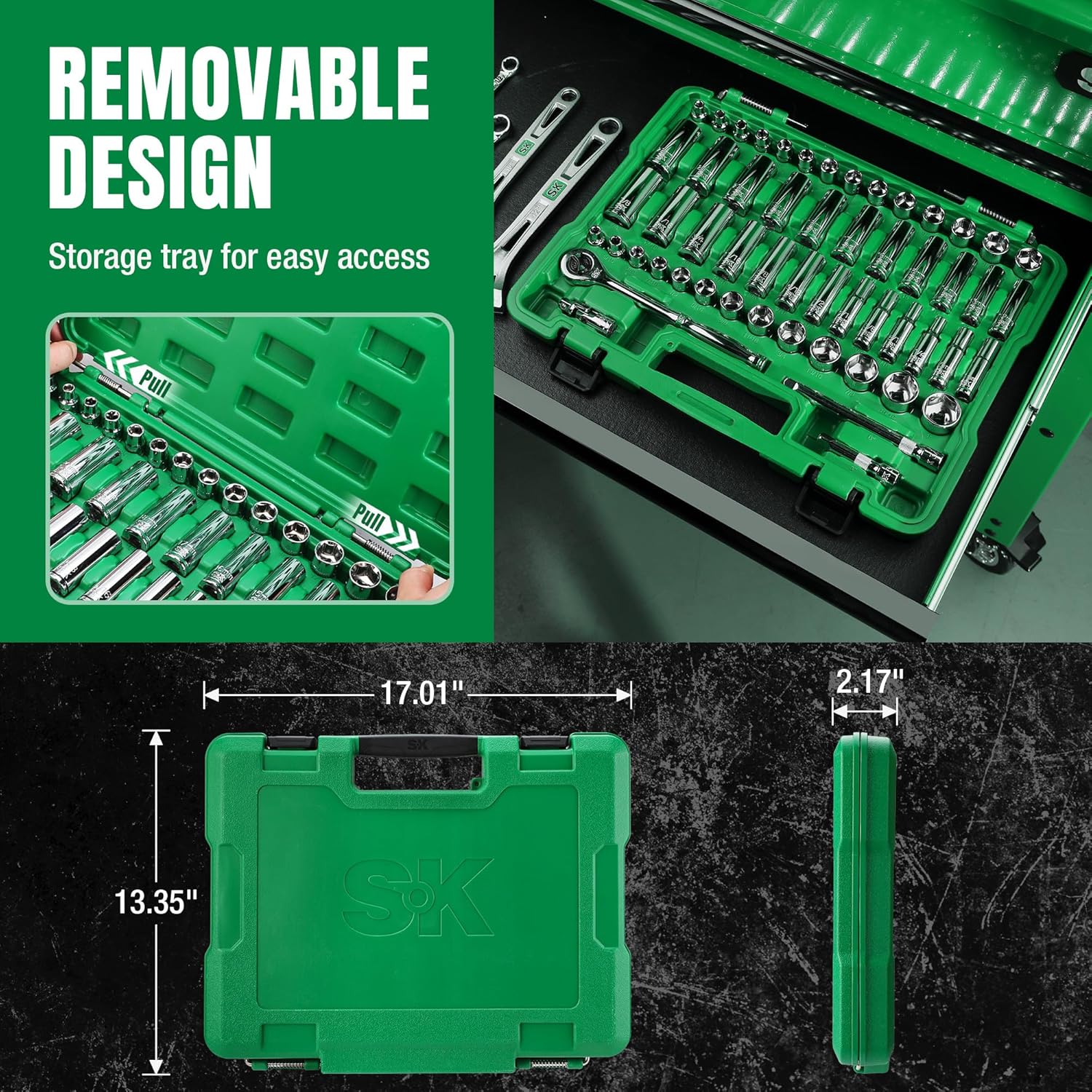 Storage suitcase to keep all these tools organized. High visibility size markings for easy tool identification. Provides great protection, organization, and accessibility for your professional use
