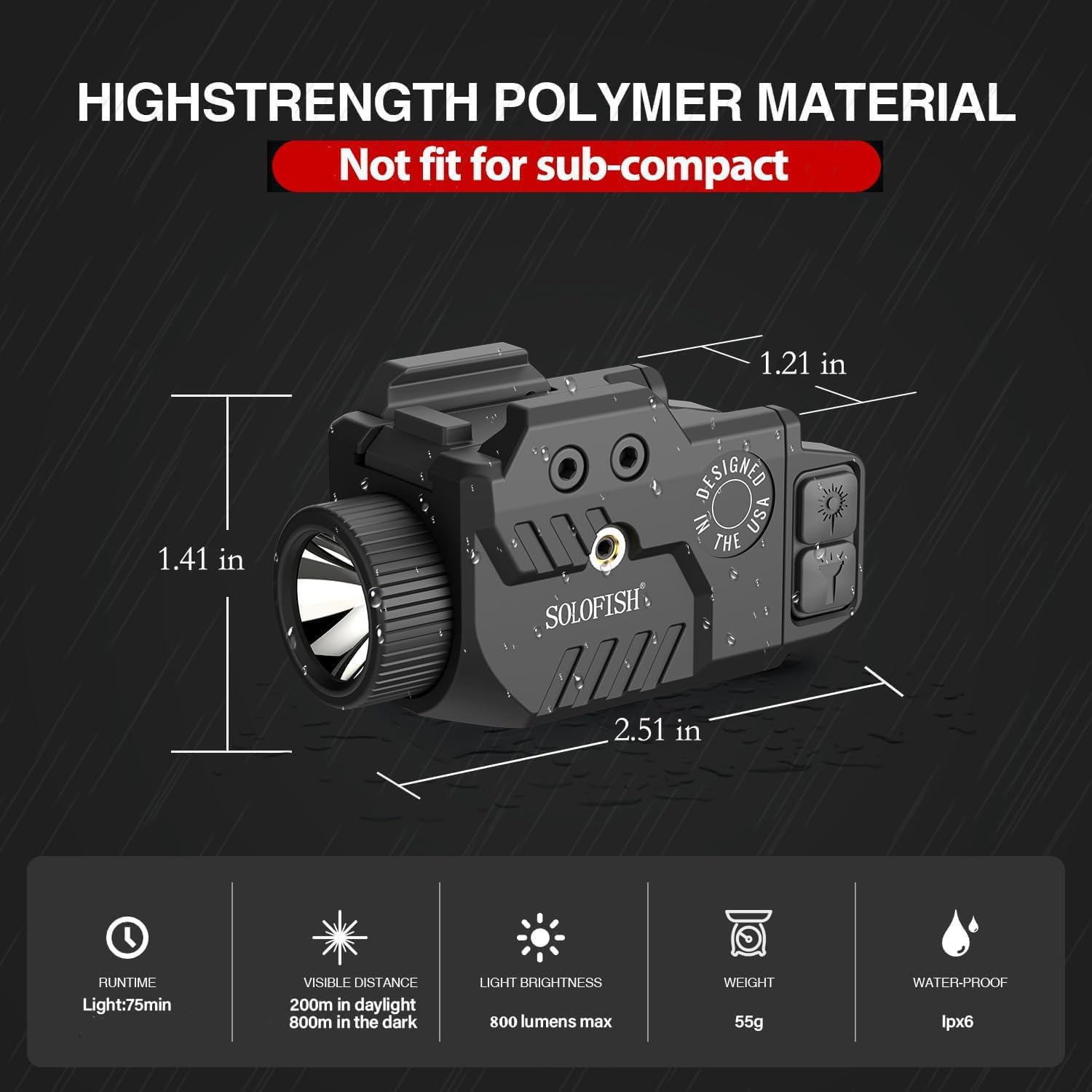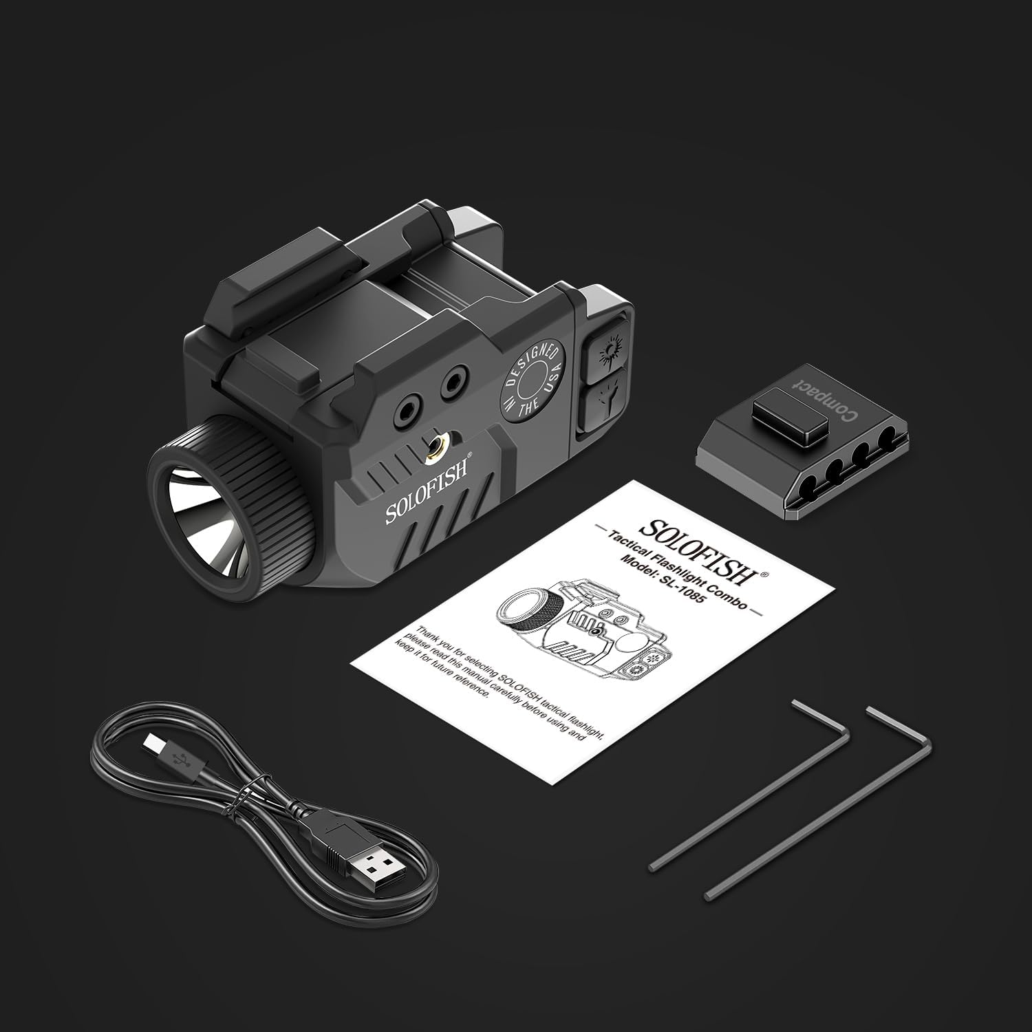 【Bright Flashlight】The 800 Lumens tactical laser light combo is powered by a rechargeable built-in, which can run about 16 hours for laser only, 75 minutes for flashlight only, 45 minutes for light & laser.