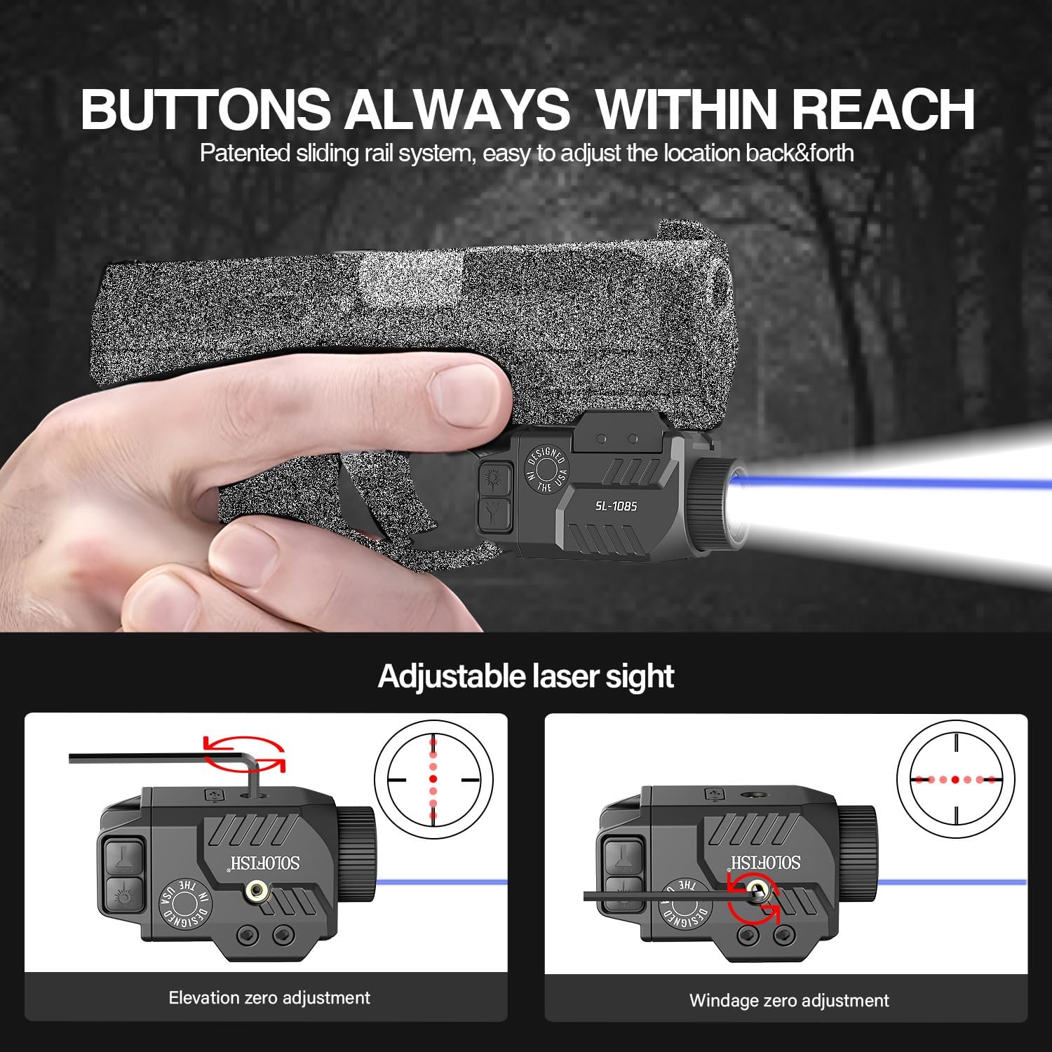 【Adjustable Rail】Slidable rail offers your the best postion freely. Also makes the pistol laser light combo be compatible for a rail.