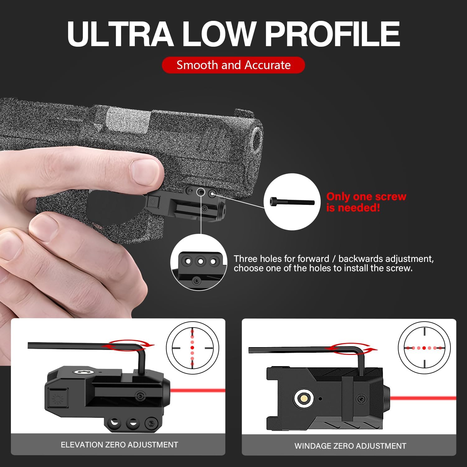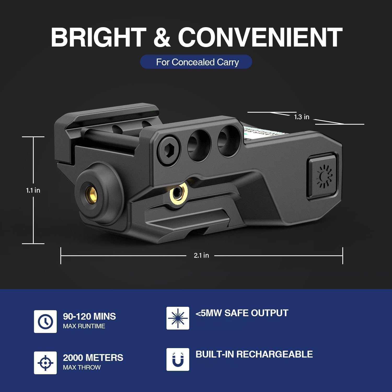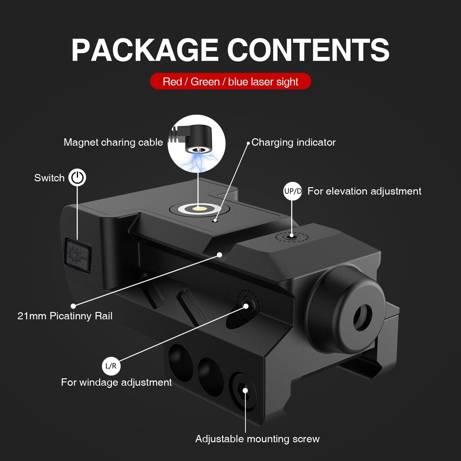 【Rechargeable】The red Laser sight for pistol is rechargeable, A full charging takes about 1 hour and provide about 2 hours max continuous usage.