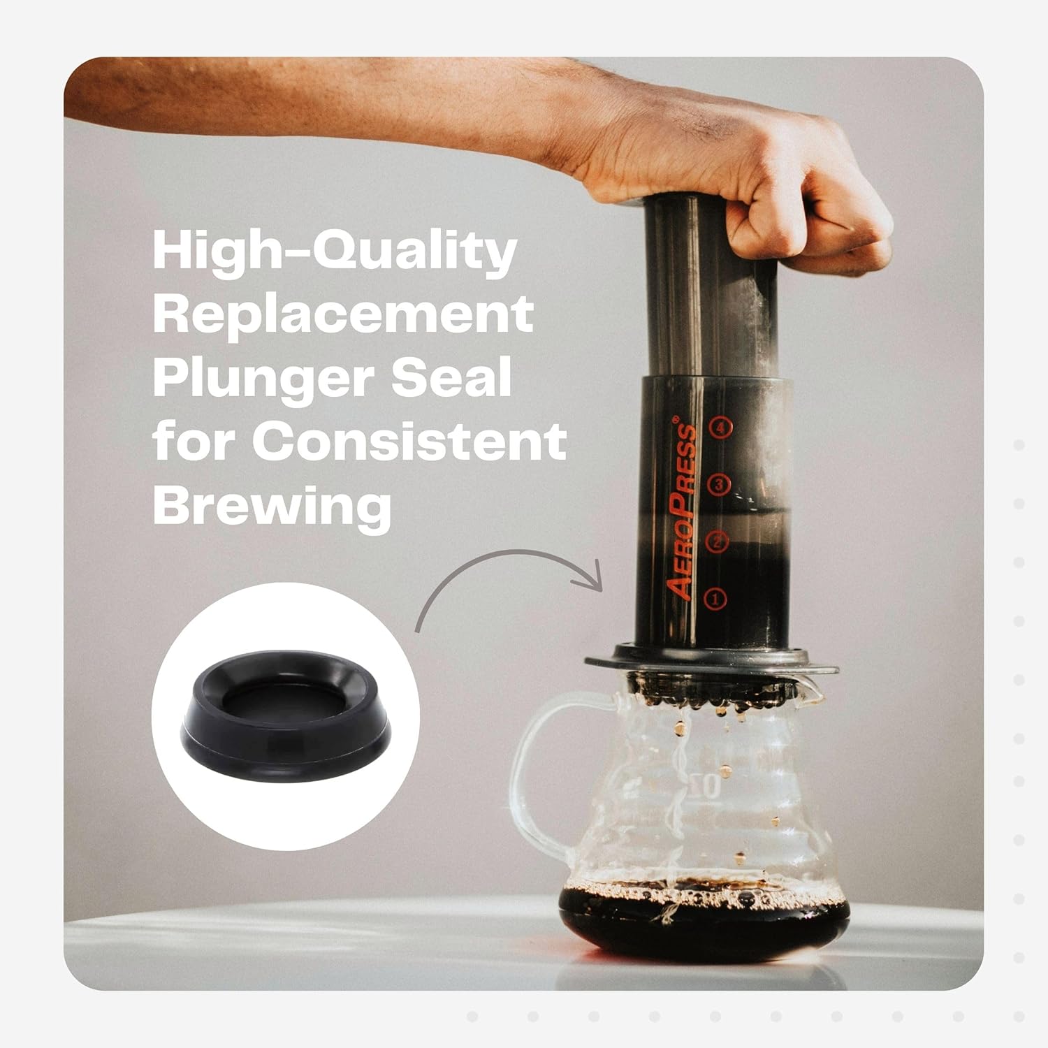 Our Plunger Replacement is designed to be compatible with your AeroPress Coffee Makers. The rubber silicone gasket end can deteriorate after brewing hundreds of coffee. An old plunger seal can affect your coffee quality. Start a fresh new cup by replacing your old aeropress seal with a new one