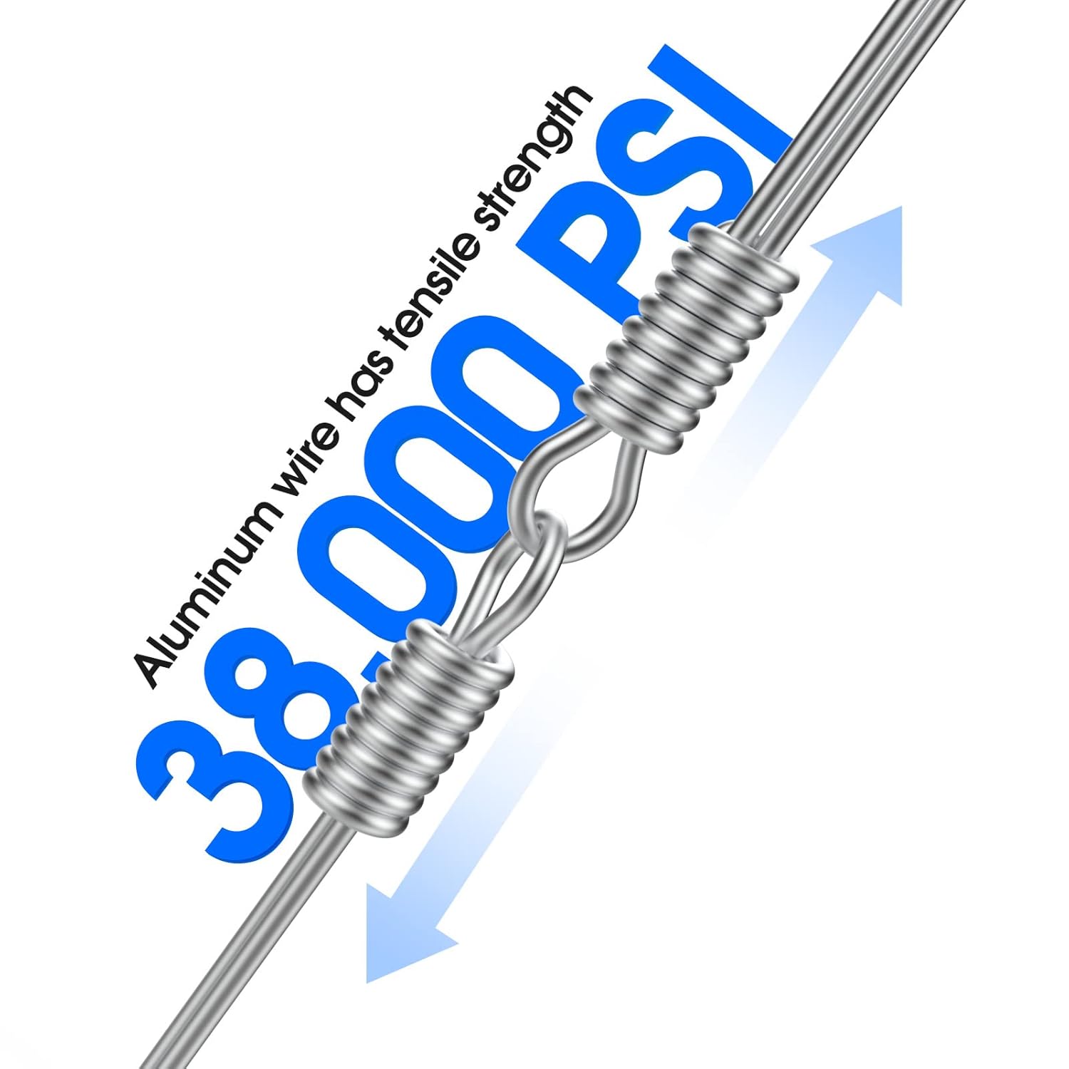 Aluminum wire has tensile strength 38,000 PSI, Breaking load: 90 lbs; and Will not rust in harsh weather.