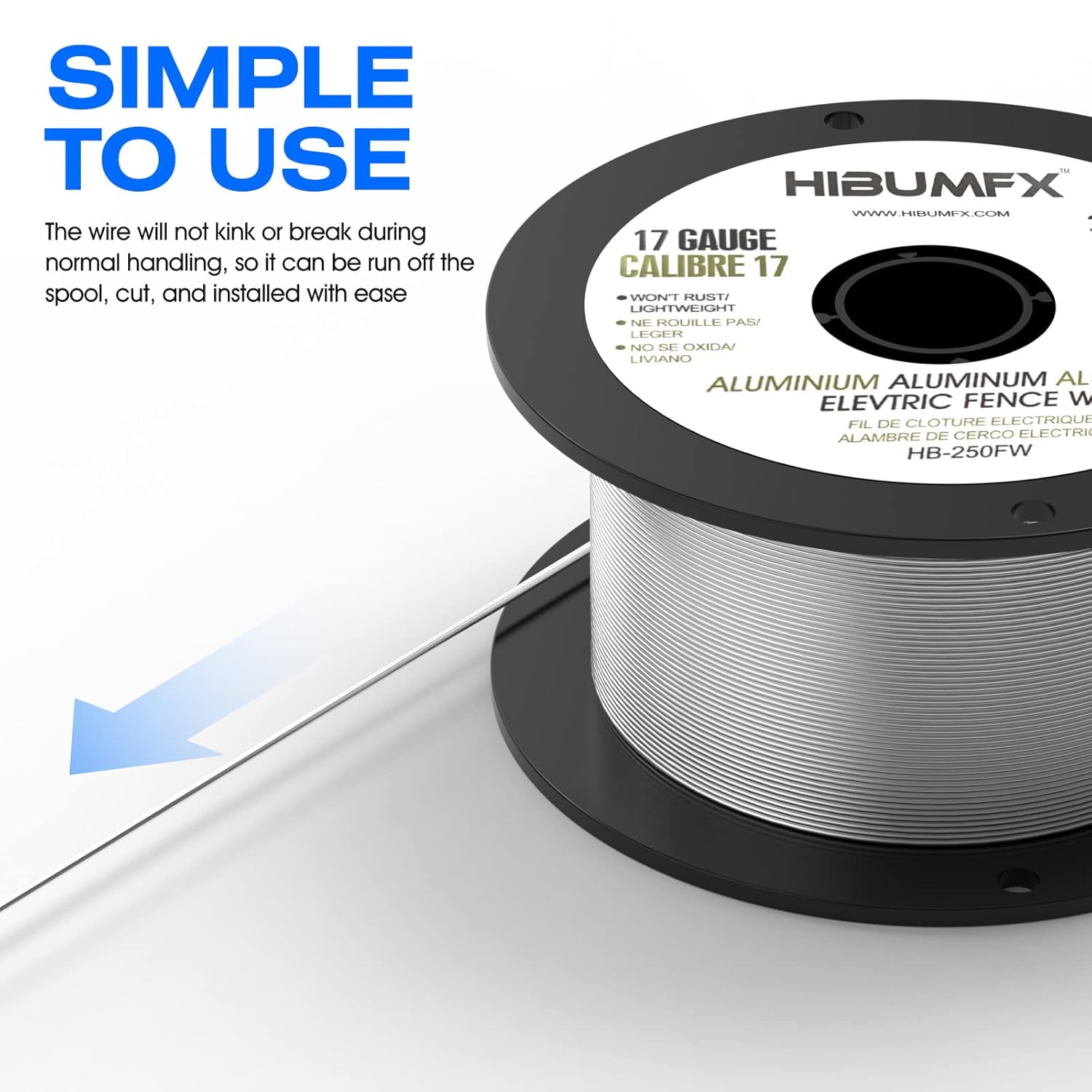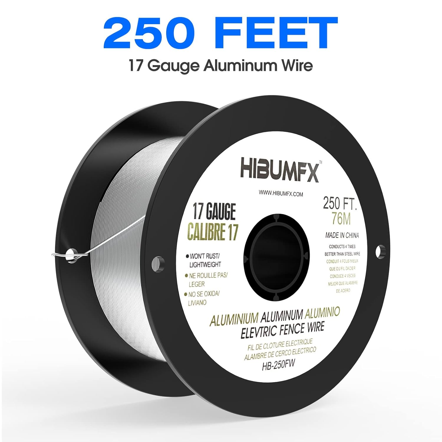 Includes: 1 x 250ft spool of 17 gauge aluminum electric fence wire ,1 reel = 250 feet of 17 gauge aluminum wire