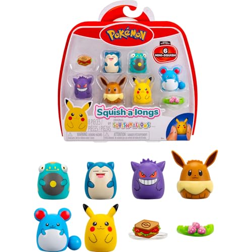Squish-a-longs Pokémon Mini-Squish 6-Pack (Gengar, Pikachu, Snorlax, Eevee, Bellibolt, Marill) (Amazon Exclusive)