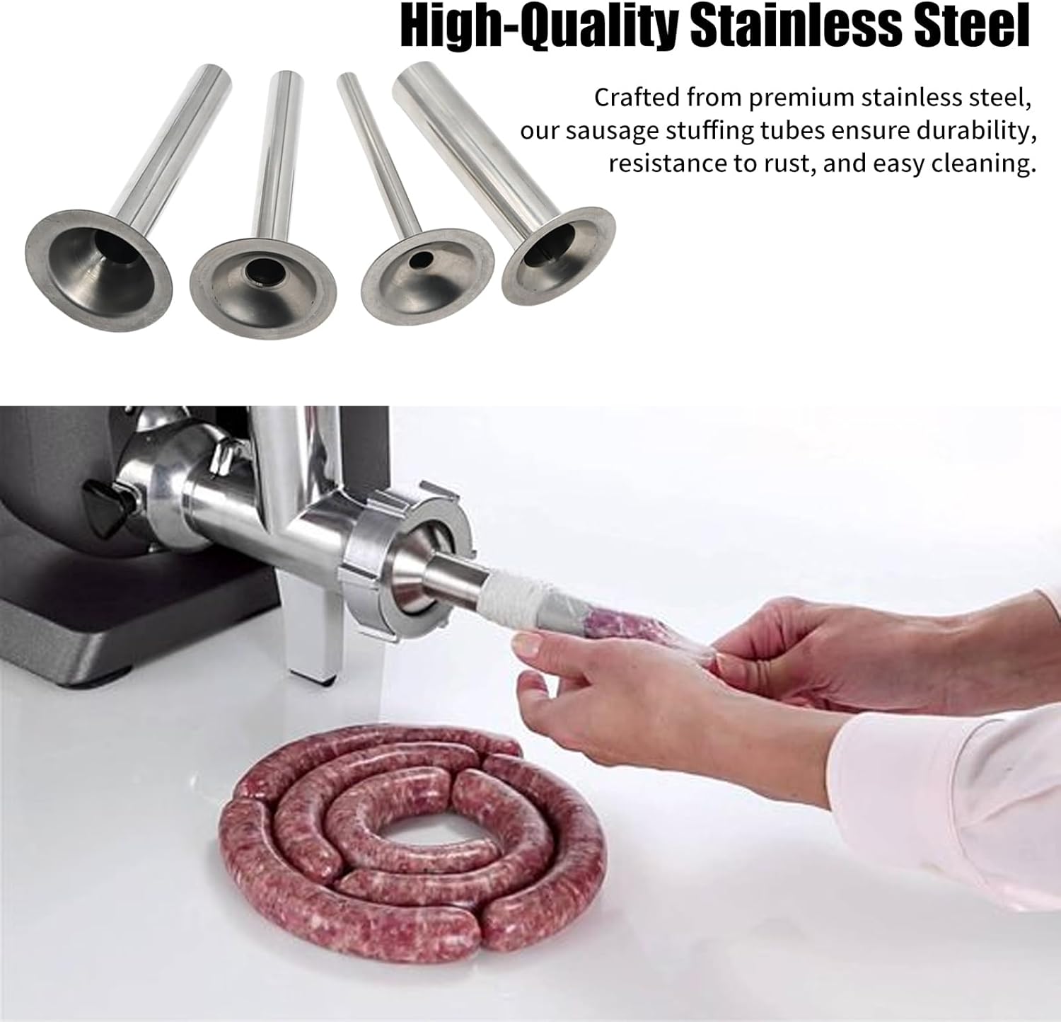 Elevate your sausage-making experience with Saihisday Stainless Steel Sausage Stuffer Tubes.