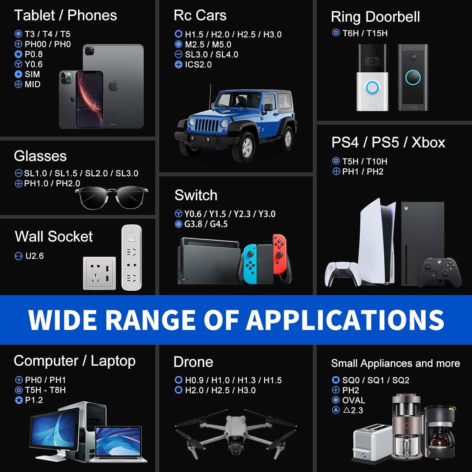 64-in-1 Precision Screwdriver Set: This small screwdriver set includes 48 bits (Phillips, Flathead, Torx, Torx security, Triwing, Pentalobe, Hex, Triangle, U-type, Square, SIM, MID, OVAL, Gamebit, Nut driver). It’s a complete electronics repair kit that has been professionally designed to repair computers, PC, laptops, Macbooks, tablet, phones, PS4 PS5, XBOX, Switch, eyeglasses, drone, watches, Ring doorbells and more