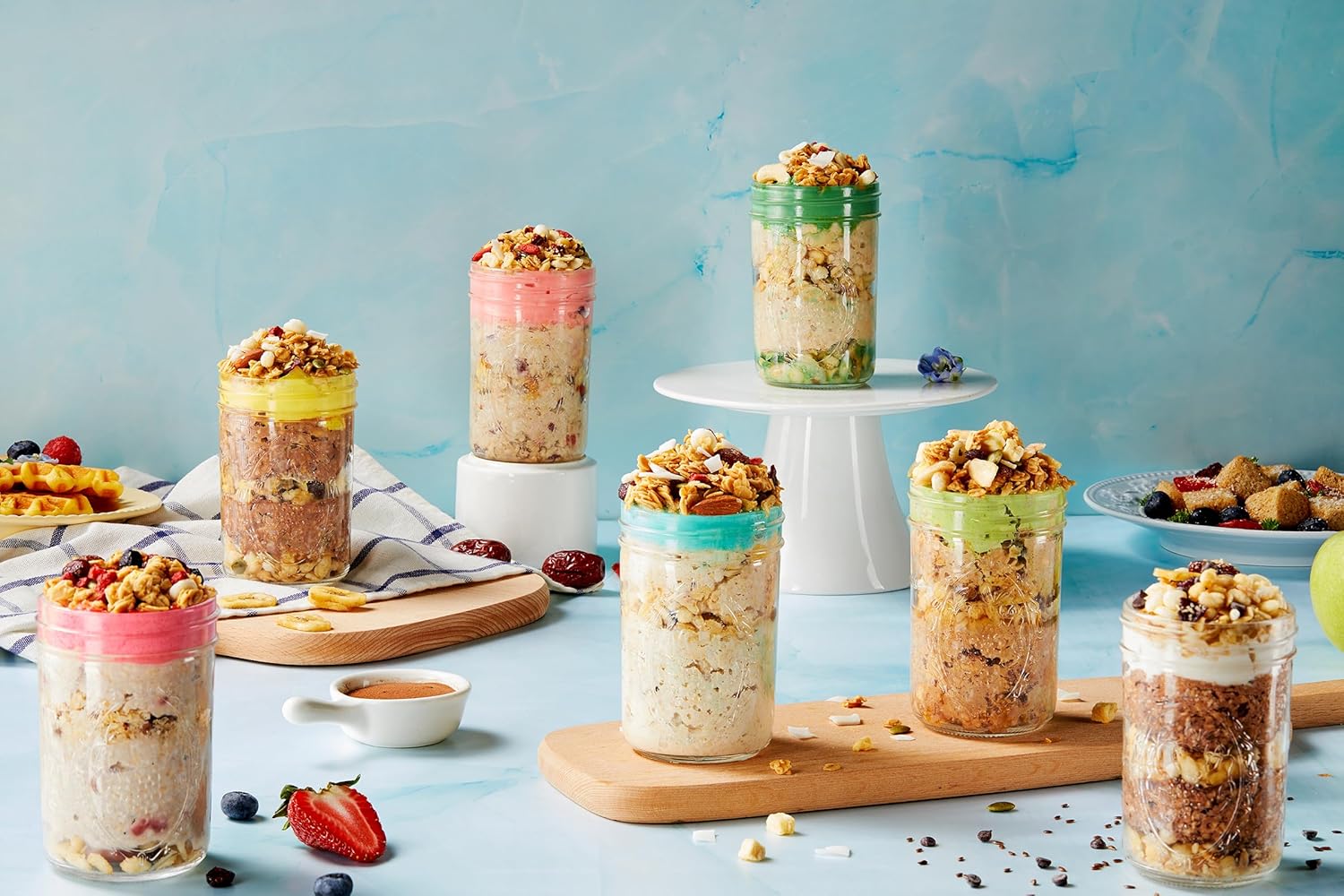 [One Oatmeal Jar Feeds Your Day] From Dawn Cravings to Midnight Comforts! ①Morning:garb-and-go breakfast for rush hour/ ②Work:office snack to avoid cravings/ ③Gym:pre workout oats for energy/ ④Tea Time:guilt free dessert (make into smoothies) replacement/ ⑤Dinner:300 calorie savory dinner oats/ ⑥Midnight:friendly late night snack./ ⑦Picnics: Easy to make and carry, and Instagram-worthy./ ⑧Road Trips: Lightweight and portable, easy to use./ ⑨Outdoor Activities (Hiking, Camping): Portable, convenient, and a quick energy boost.