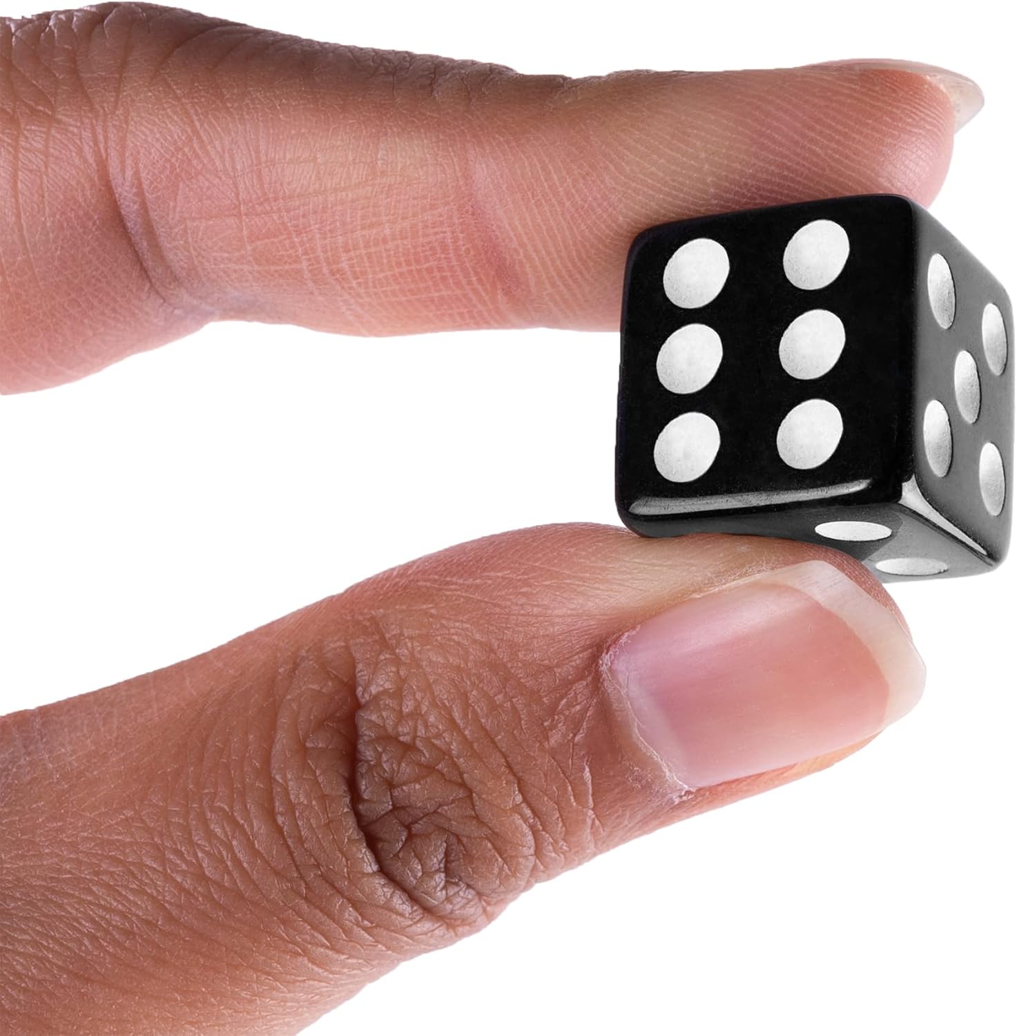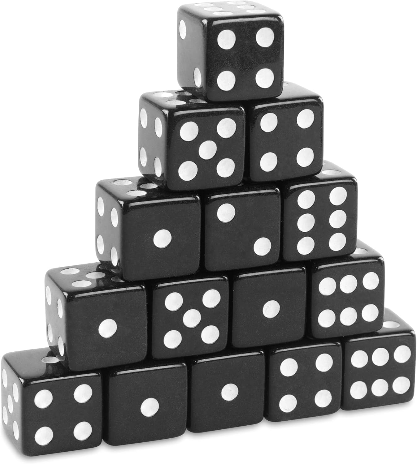 Bring out the fun with this classic black colored dice set card games the entire family will love! Gather the entire group for fun game nights of dice games with this 100 piece dice set. Turn a simple casino idea into a creative Las Vegas decorations by using them as novelty gifts, birthday party favors, table confetti scatter, and much more! With easy to see dice with clearly marked dots made for casino theme events, replacements to many board games, party favor candy bags, and party decorations. The perfect fit for the most played dice games like craps, Yahtzee, backgammon, Boggle, monopoly, dungeons and dragons. Pair these fun game dice with other novelty toys, DIY art projects, crafts toy accessories, and for many family board games with missing dice. Get creative and make up your own cool math games that teach addition, subtraction, number recognition, multiplication and division. Place them in a pouch and have them ready for poker night and family game night.
