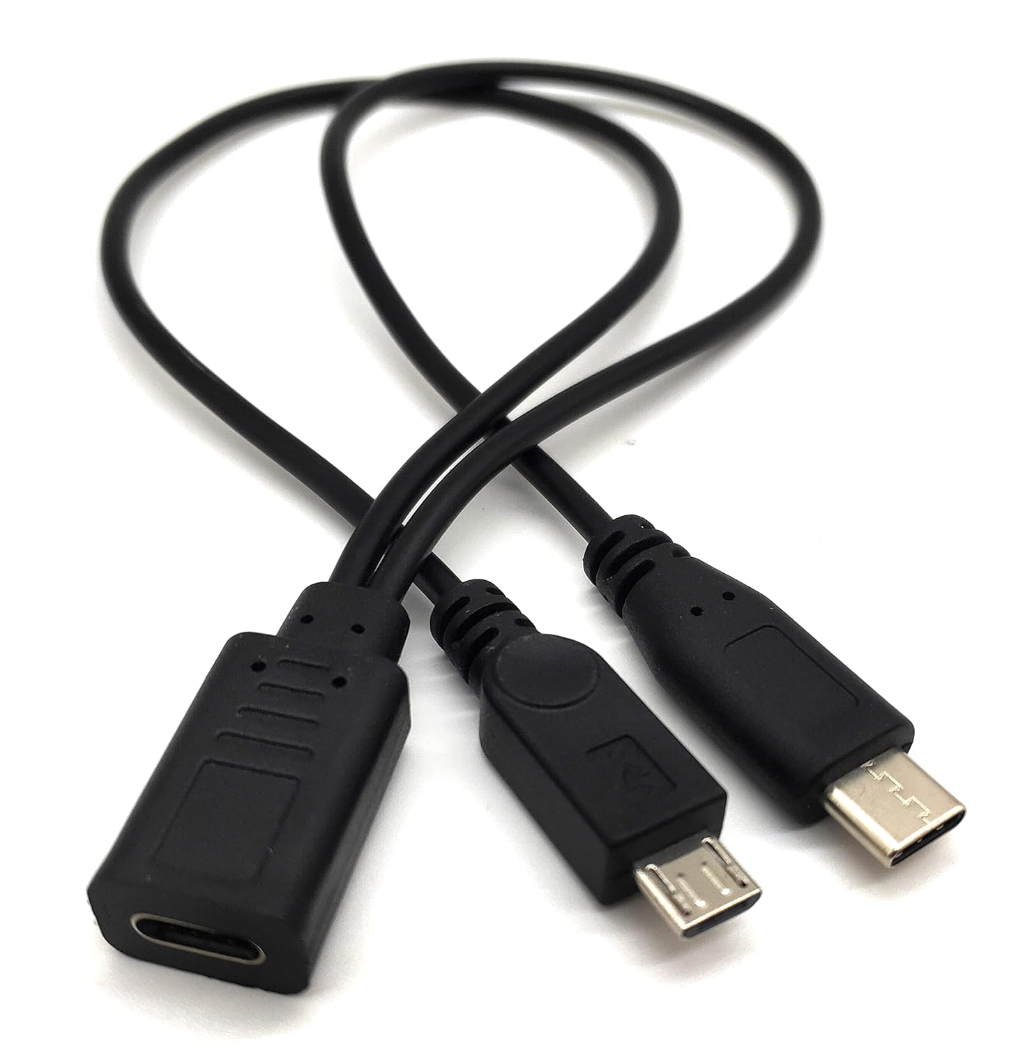 USB C Splitter Cable,Traovien USB Type C Female to Male & Micro for in Digital Products and Computer Peripherals Power at the same time to one Type C + Micro USB Devices at Once from a Single USB C Port 0.3m/12inch (1Pcs)