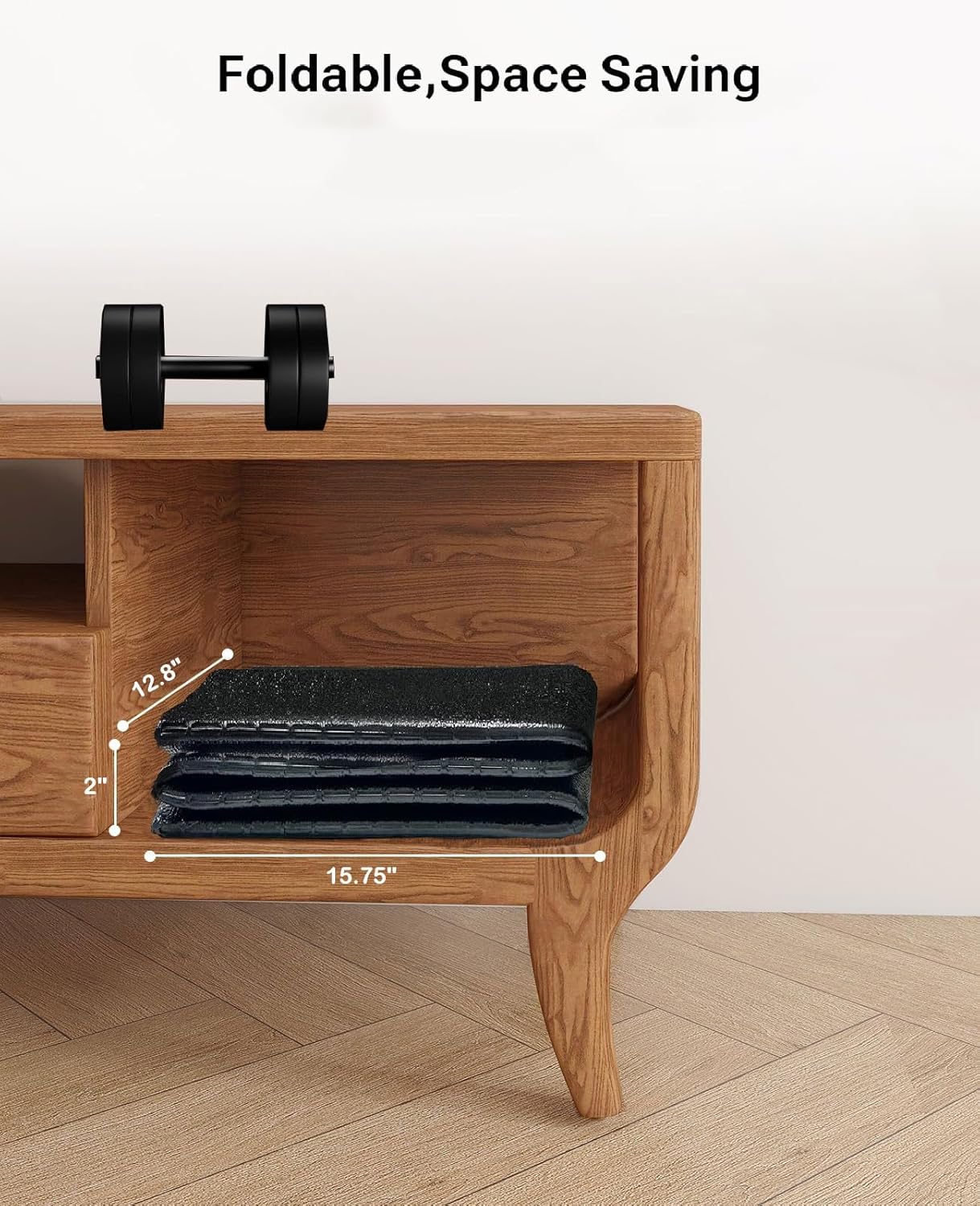 ๐จ๐ฅ๐๐๐๐ฅ๐ ๐๐ง๐ ๐๐ฉ๐๐๐-๐๐๐ฏ๐ข๐ง๐ : Unfolding to dimensions of 63″ x 25.6″ x 0.24″ and folding down to 15.75″ x 12.8″ x 2″, this exercise mat is easily stored in cabinets or backpacks, providing convenience for transportation and storage compared to traditional mats.