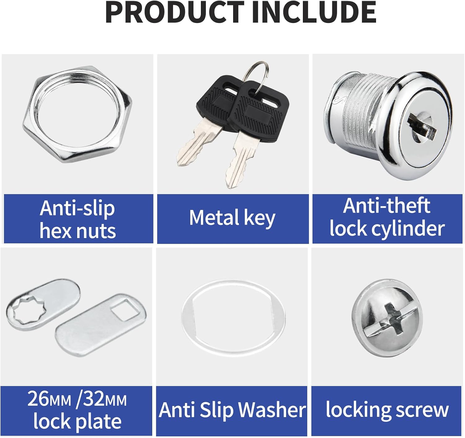 🔑【Universal Keyed】Toolbox Lock set can be install in different places and you just carry one key to open all locks. the key can only be pulled out when the lock body is locked to avoid loss