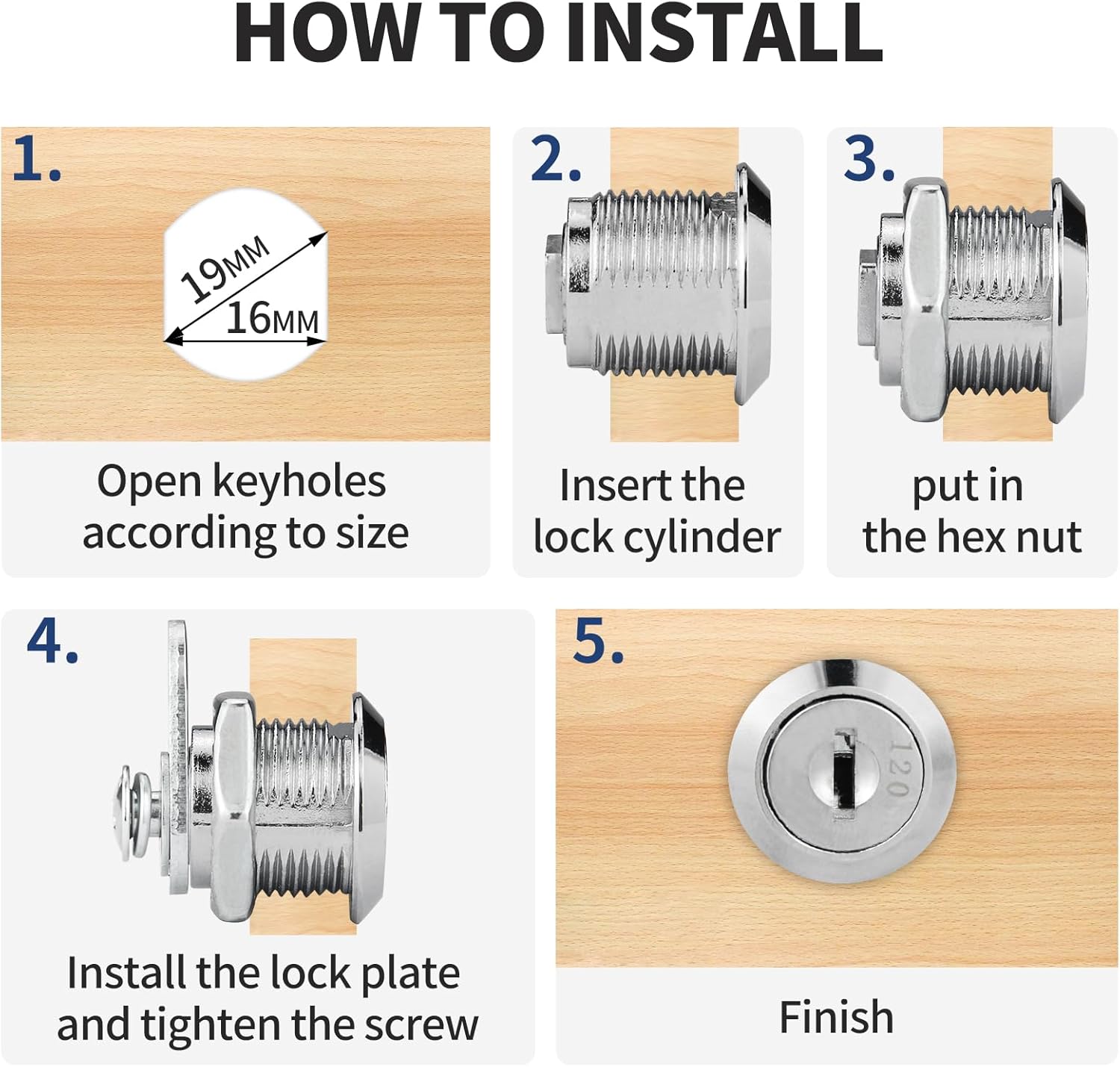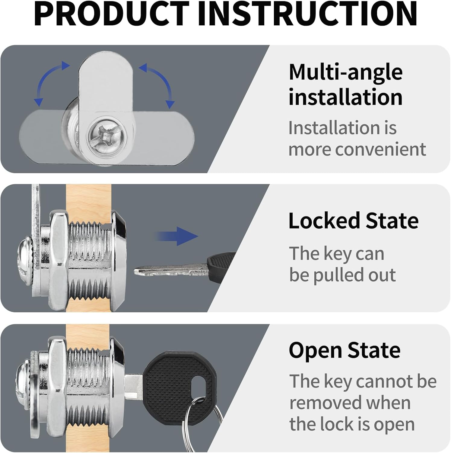 🔒【Product Installation】Cam lock adopts a detachable design, and the locking direction of the lock plate can be adjusted according to different needs. A few locks require a shorter lock plate, and the length of the lock plate is properly polished for better use
