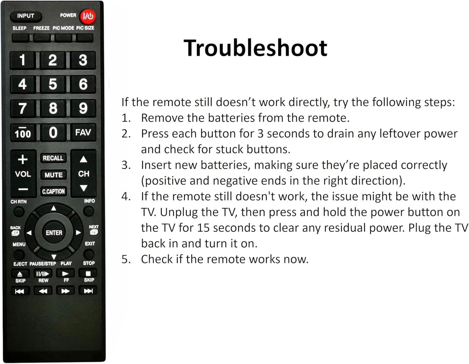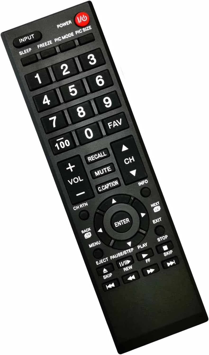 Universal Replaced Toshiba CT-90325 remote for All Toshiba TVs: 55HT1U 55S41U 55SL412U 65HT2U 46G310U 46SL41 19AV600 19AV600U, 19AV600UZ, 19C100U 19C1D, 19C10, 19C10U, 19C100, 19C100U, 19AV600U 19SL400, 19SL400U, 19SL410U 22AV600, 22AV600U, 22AV600UZ, 32C120U, 22C10, 22C10U, 22C100, 22C100U, 22SL400, 22SL400U, 22SL410U and more…