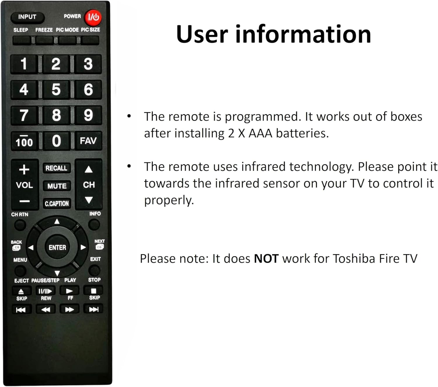This remote does NOT work for Toshiba fire TV.