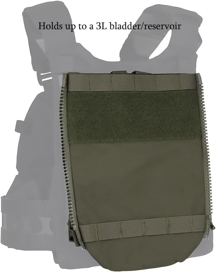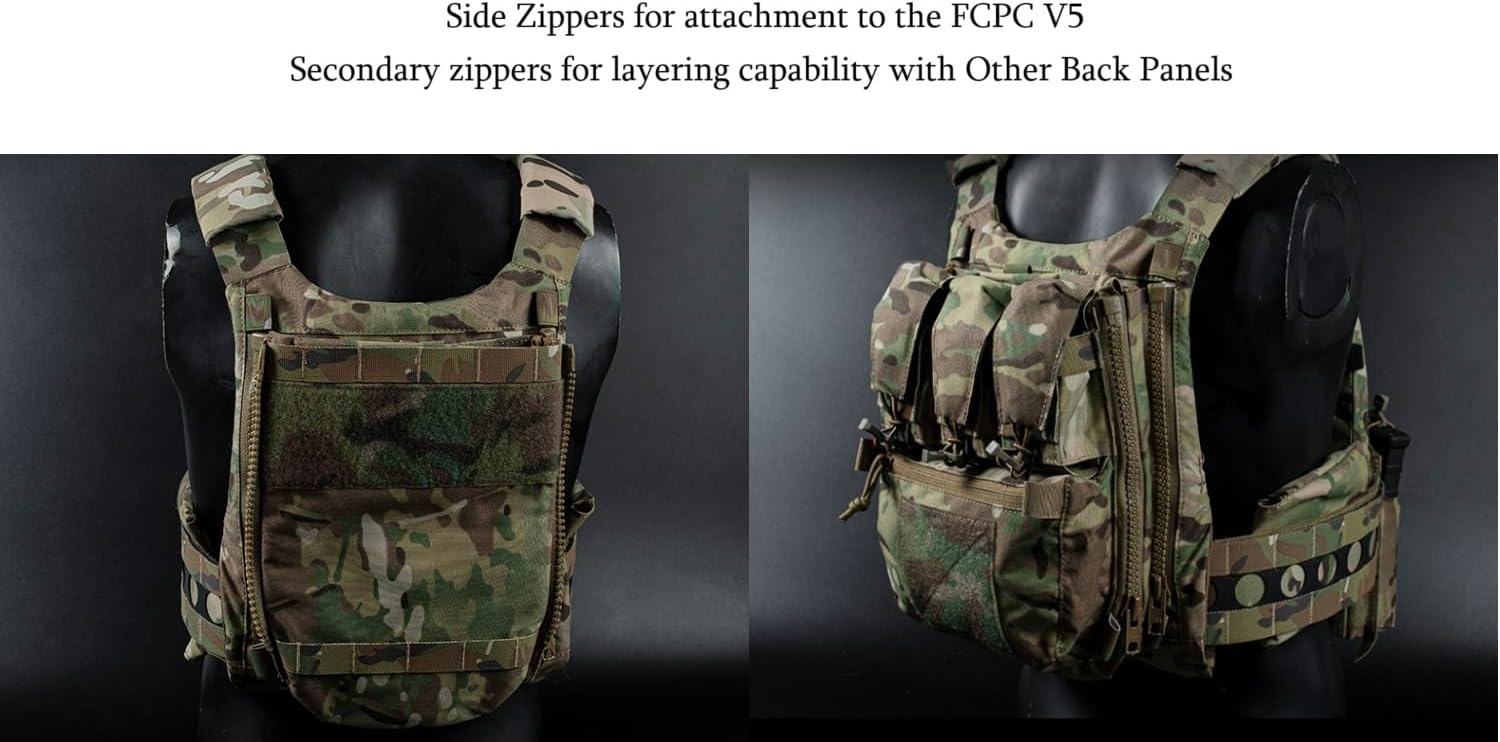 Equipped with side attachment zippers for quick and secure attachment to the FCPC V5 and with a second set of zippers allowing it to be layered in between other back panels for additional adaptability. ( The size of zipper (its teeth width) is 8mm. It is compatible with FCPC vest, not sure if it is compatible with another vest. )