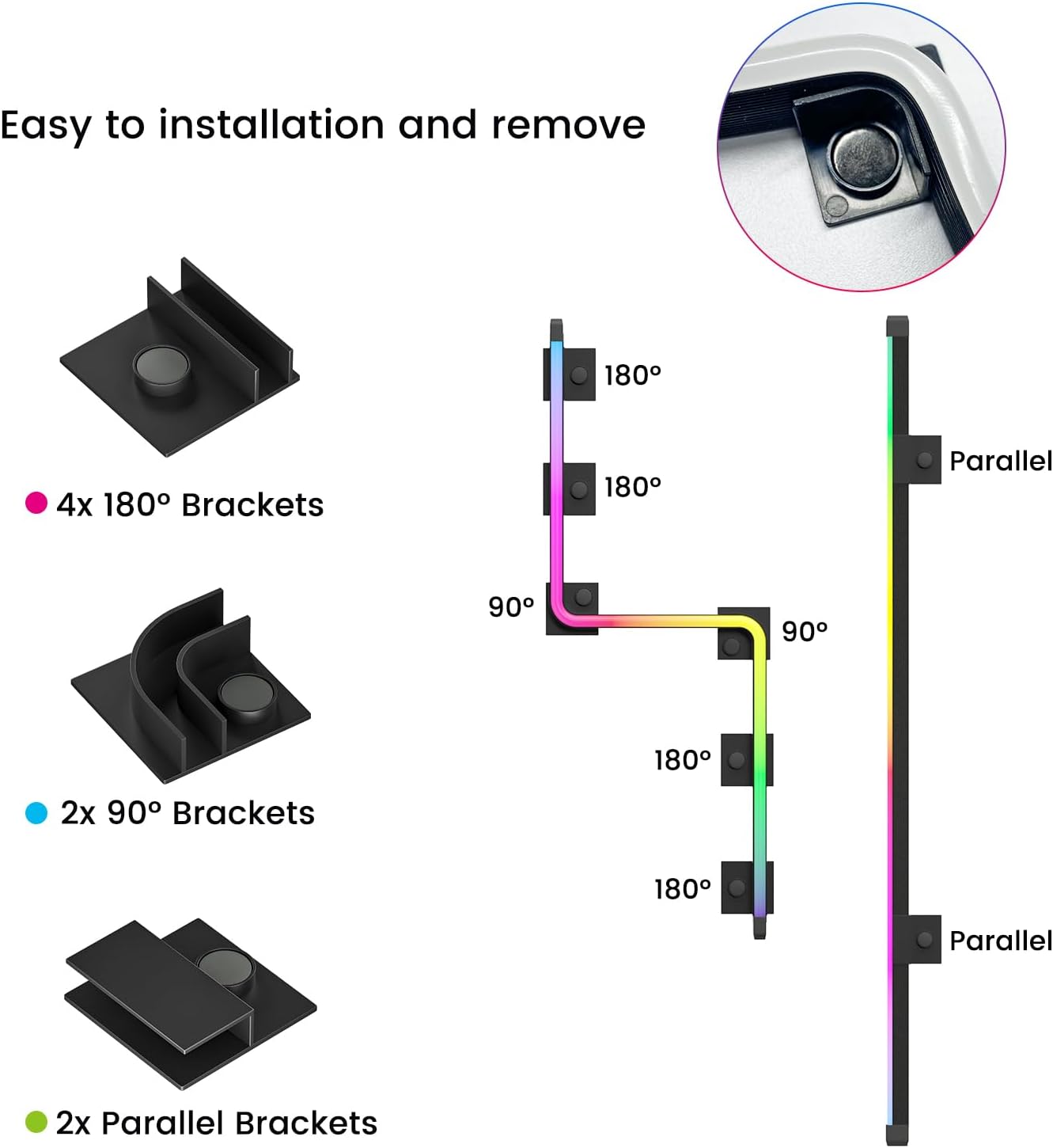 Easy Installation with 8pcs brackets, no complex tools required for LED strip.