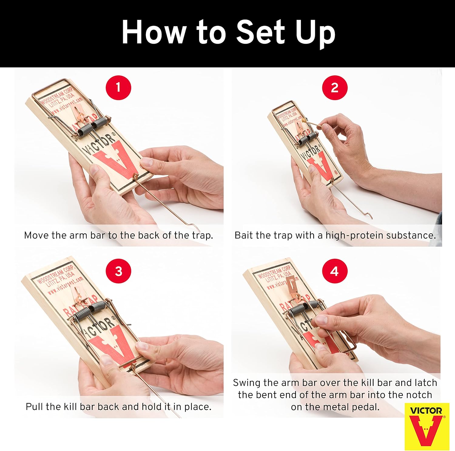 The original wood-based wire snap trap, the M200 Victor Metal Pedal Rat Trap provides instant rodent control and is safe for household or business use. Trusted to control rats for over 100 years, this trap allows for clean and quick trapping – ideal for maximum rodent control. Once a rodent triggers the metal pedal, the trap immediately springs closed to eliminate the pest on contact. It can then be easily disposed of for quick and clean removal. With superior quality and effectiveness, the Victor rat trap has become the #1 selling trap in the world – with over 1 billion sold. Also, Victor rat traps are the professionals’ trap of choice. The disposable rat traps are safe for use around food, water, children and pets. Victor Metal Pedal Rat Traps are perfect for use anywhere at your business. These rat traps should be placed where rodents travel, such as along walls at 2 to 3 foot intervals. Victor metal pedal rat traps are constructed from environmentally responsible, Forest Stewardship Council certified wood.