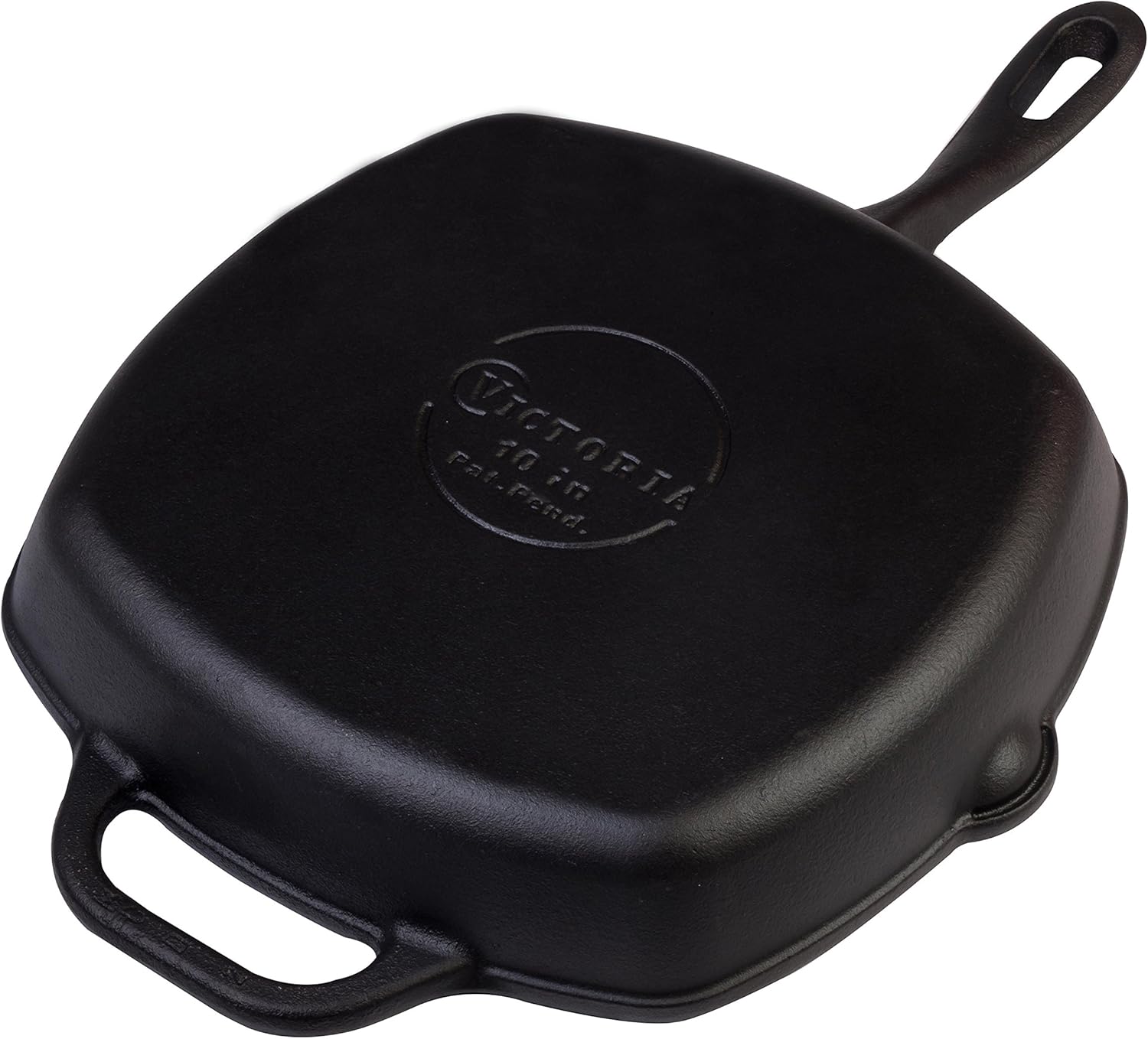 Victoria Cast Iron Grill Pan, Square Grill Pan, Cast Iron Griddle Pan, Seasoned with 100% Kosher-Certified, Non-GMO Flaxseed Oil, Black, 10 Inches