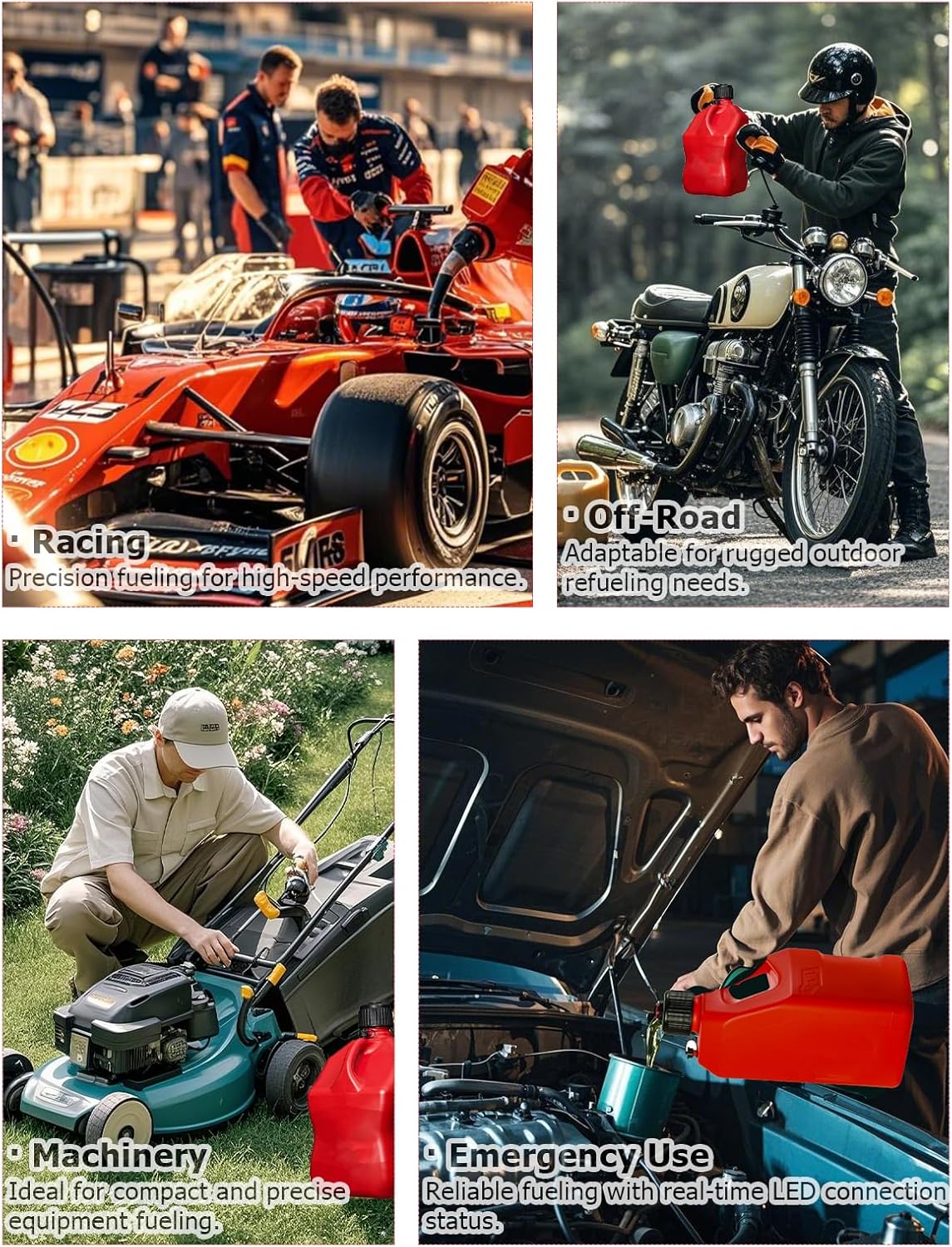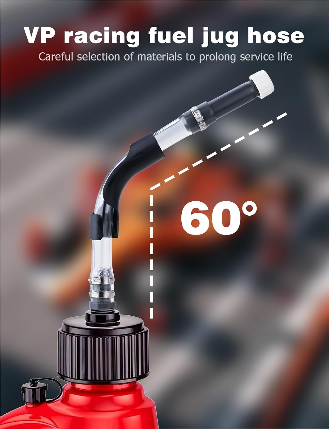 Made from high-quality PVC material, ensuring a safer working environment. Upgrades most racing gasoline tanks and fuel tanks. Compatible with jugs that feature 3/4″ NPT threads.