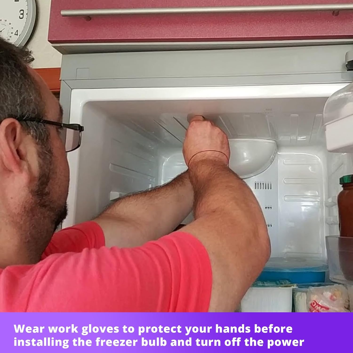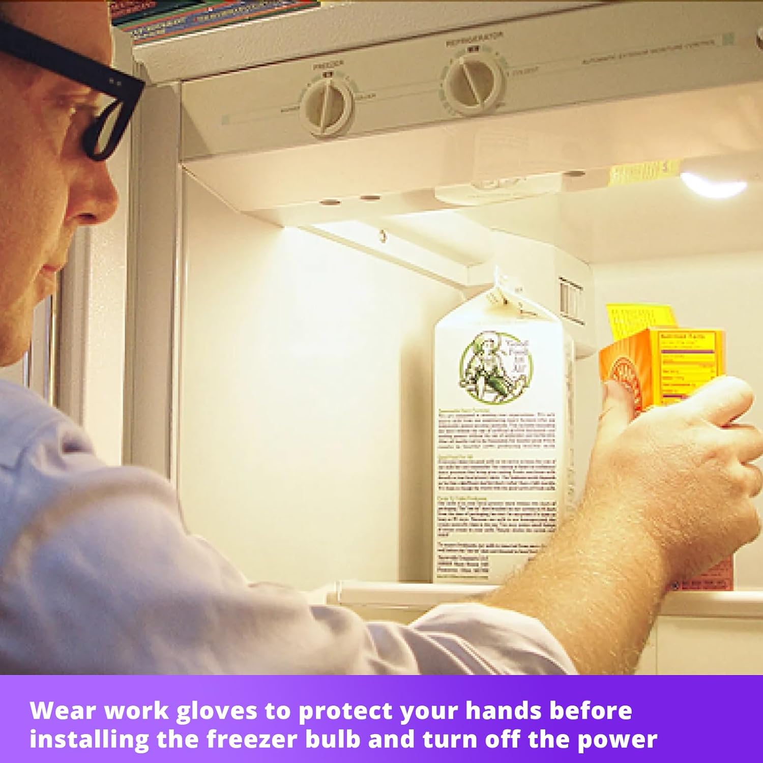 Installation Note: When your refrigerator’s interior light flickers, turns yellow, or dims, it means you are ready to replace your refrigerator LED light. Before replacing, safely store any potentially spoiled food in a power outage and unplug the refrigerator. Wear work gloves to protect your hands