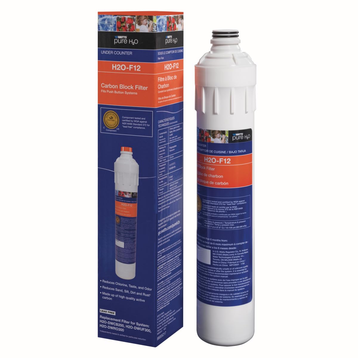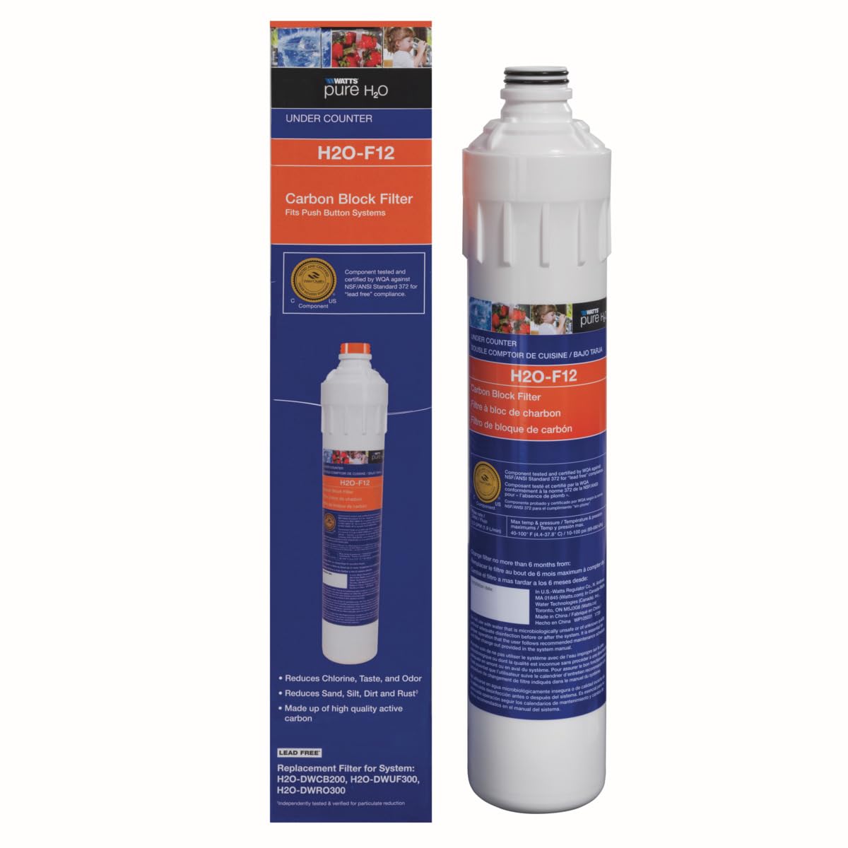 This carbon block filter is designed to fit the Watts Pure H2O under counter water filtration systems