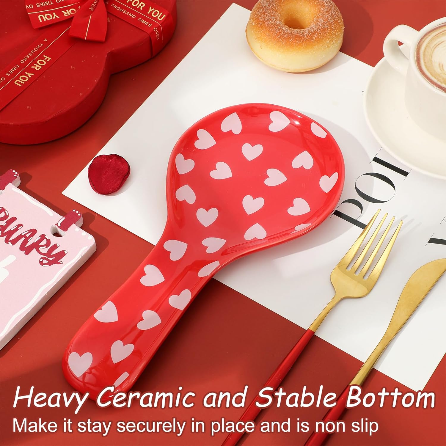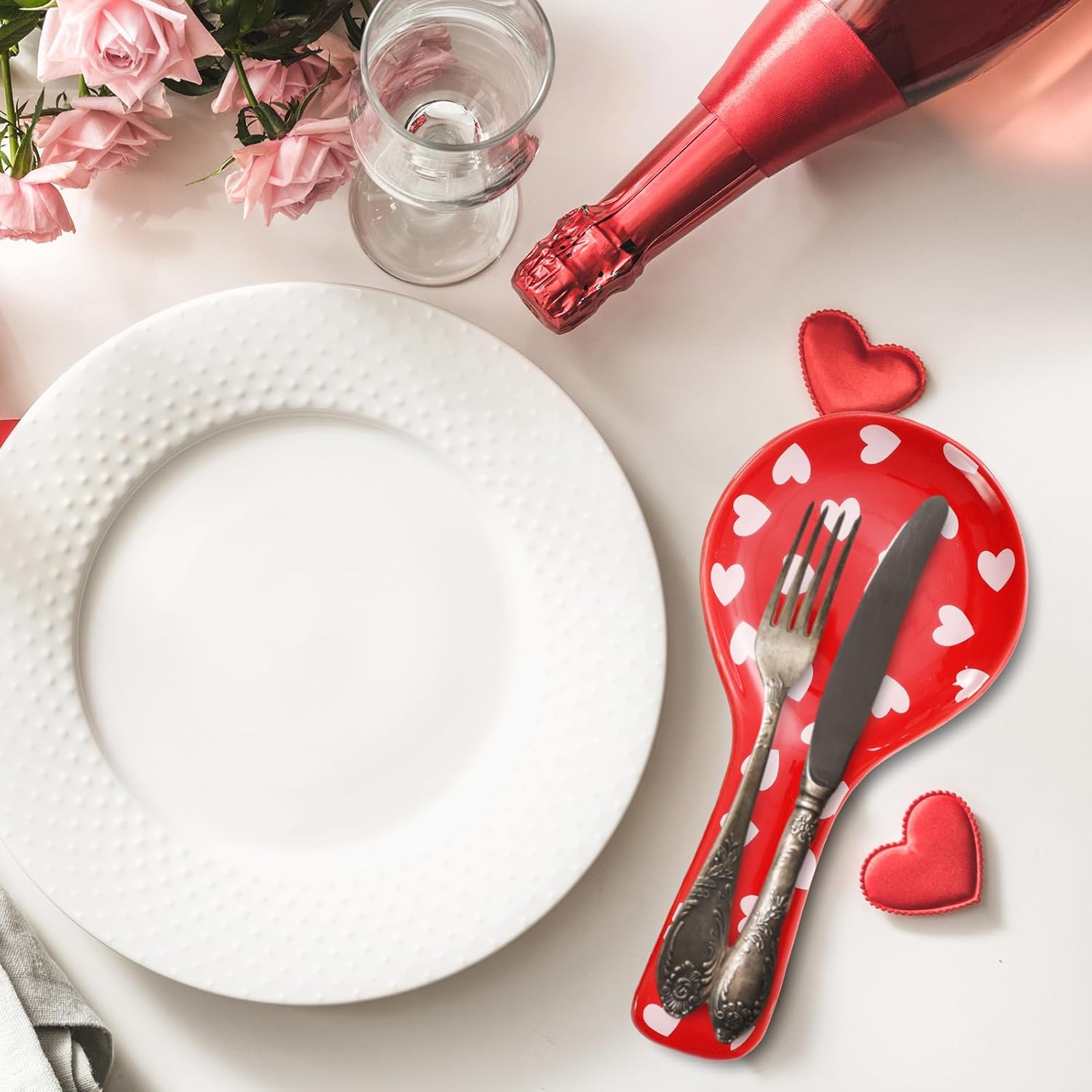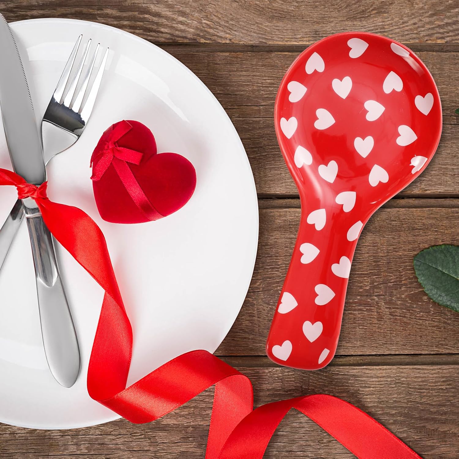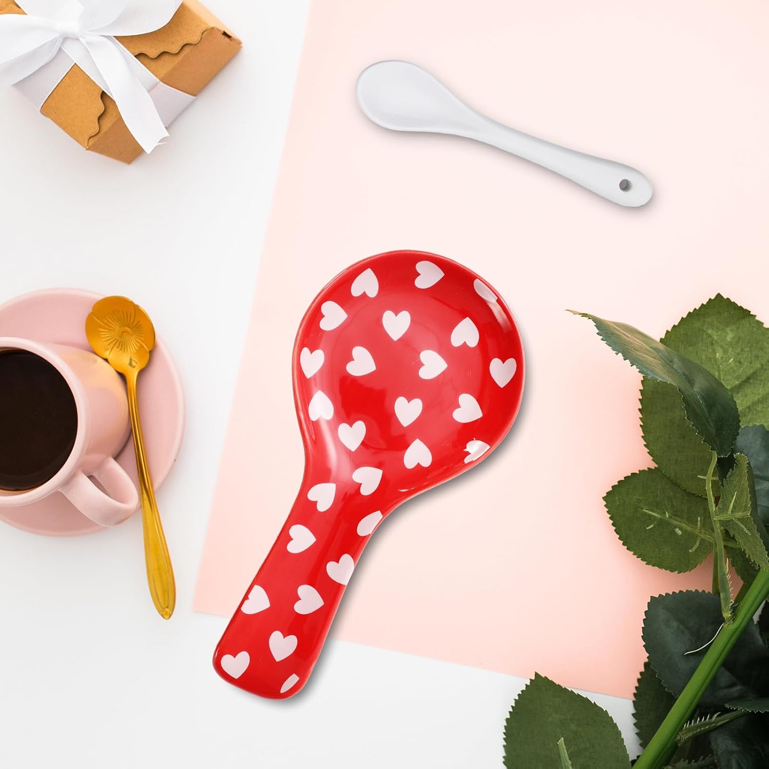 Whaline 9.4 Inch Valentine’s Day Spoon Rest Red White Heart Ceramic Spoon Holder Love Heart Cooking Spoon Holder for Stove Top Kitchen Counter Decor