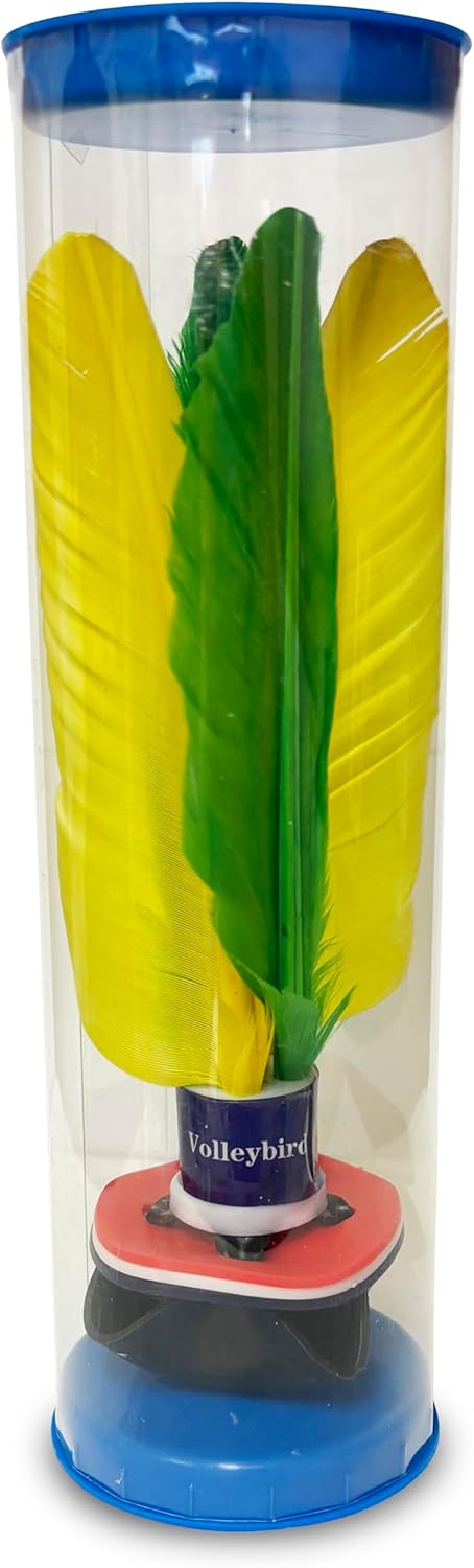 The peteca volley bird flyer, is based on peteca, a Brazilian game first played by Indian tribes hundreds of years ago. Its played by bumping it with the palm of your hand to a partner or competitively over a net like badminton with no rackets. It is also often kicked with your feet – Similar to hacky sack. The peteca volley bird stands 7″ high, weigh 22 grams, and is constructed with a special air-cushioned rubber base, and balanced with brightly colored feathers. Color combinations will Vary.