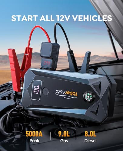 YaberAuto Jump Starter 5000A 21800mAh Battery Jumper Starter Portable (9.0L Gas/8.0L Diesel), Car Battery Jump Starter Power Pack, Fast Charge, 12V Jump Box with Safety Jumper Cables, 3-Modes-Lights