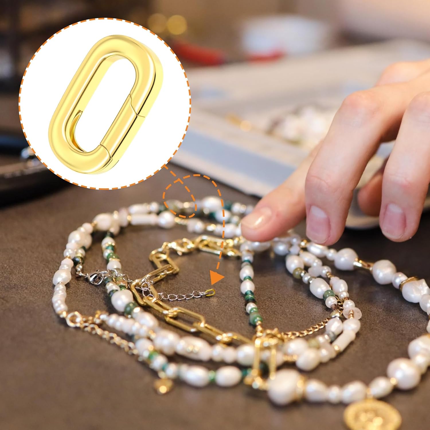 Multi-Purpose Jewelry Clasps: Use these gold oval carabiner clasps for necklaces, bracelets, anklets, pendants, wedding rings or even keychains. Great present for men and women, DIY crafters or jewelry makers