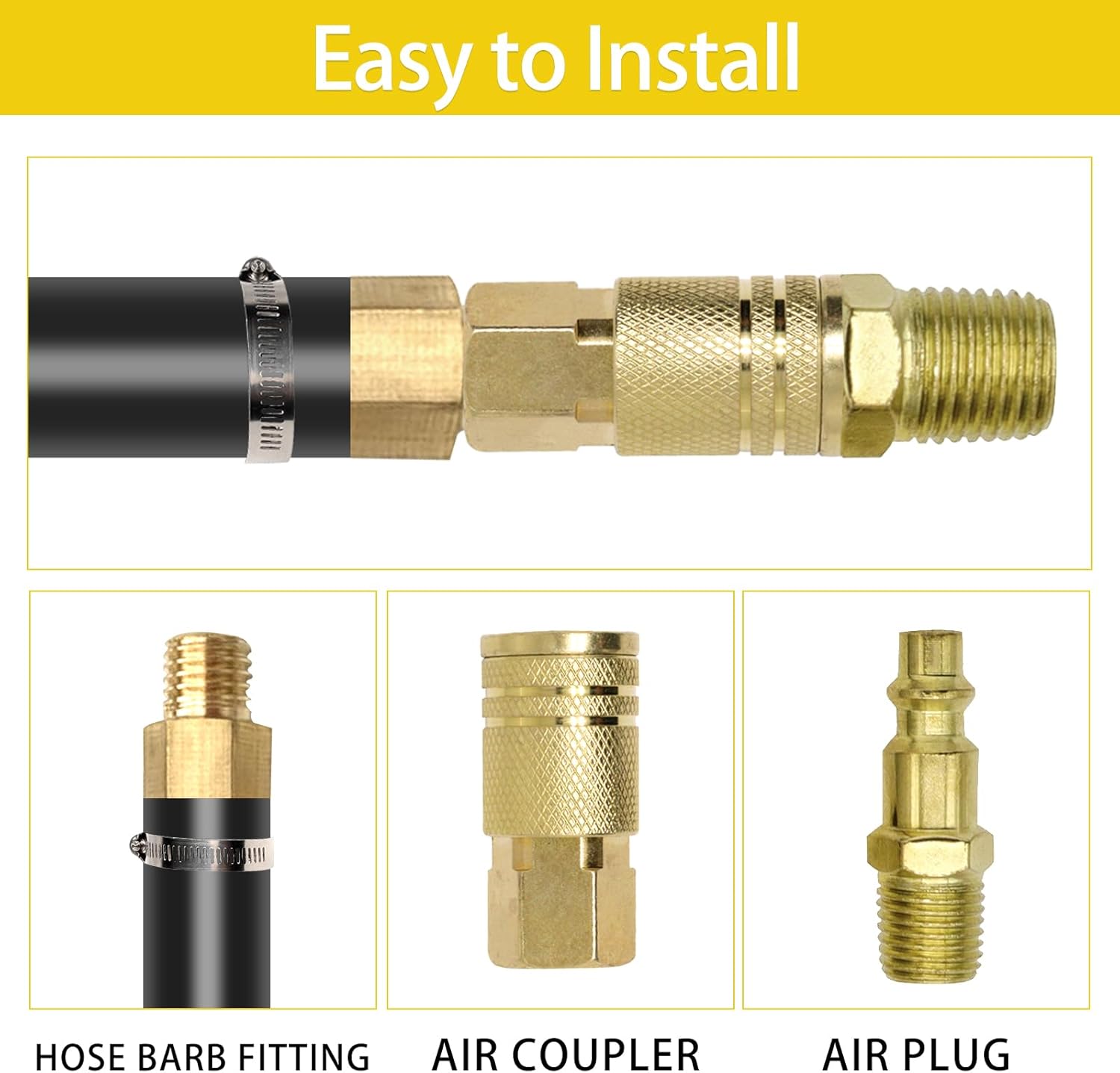 Durable Material: 1/4 air hose fittings are made of solid brass with high strength and hardness, which is resistant to corrosion and rust, durable for long term use